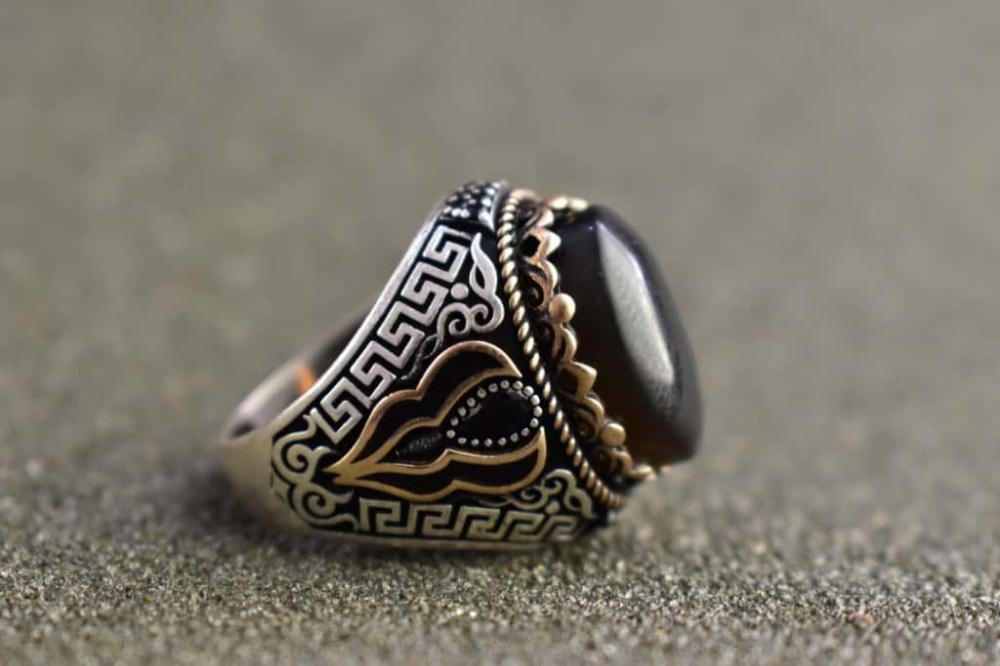 خاتم فضة رجالي مع حجر العقيق الاسود فضه إيطالي خالص عيار٩٢٥