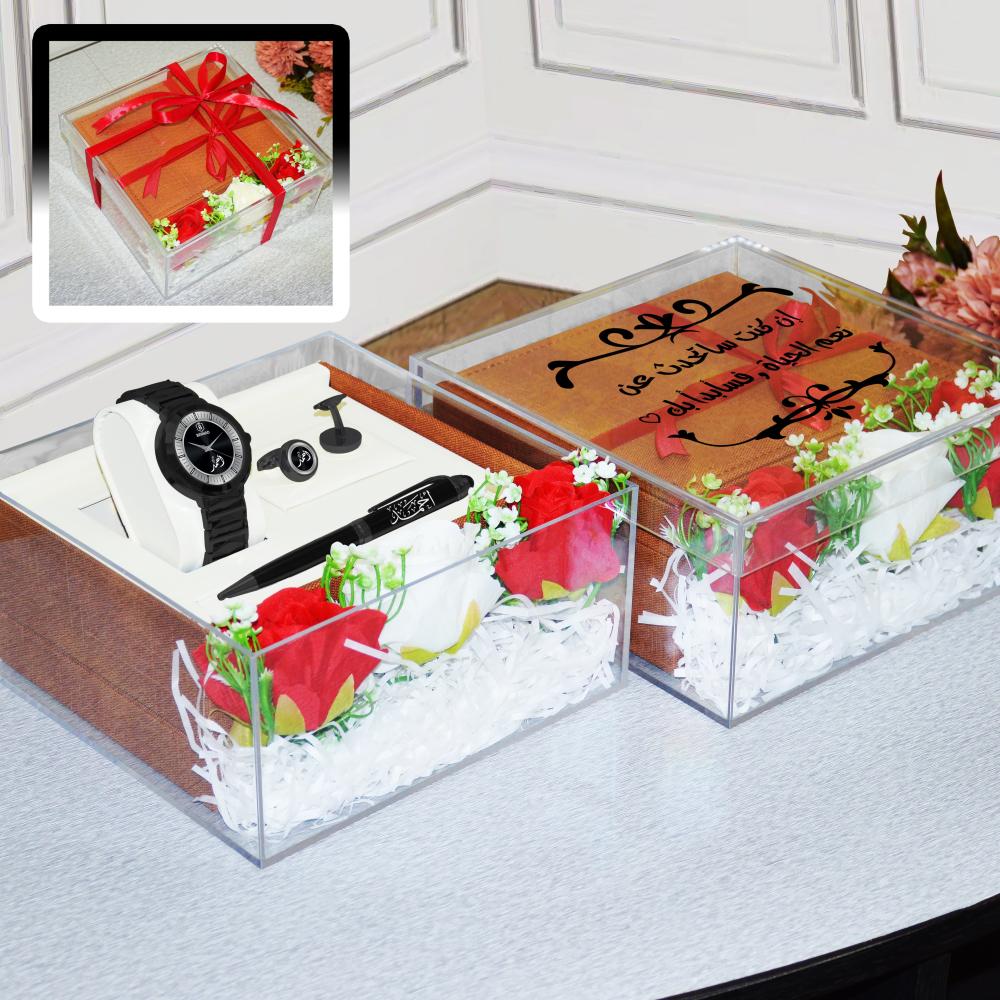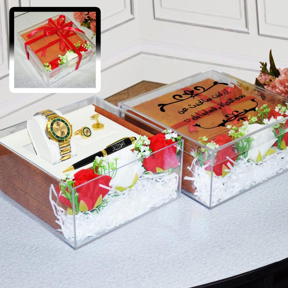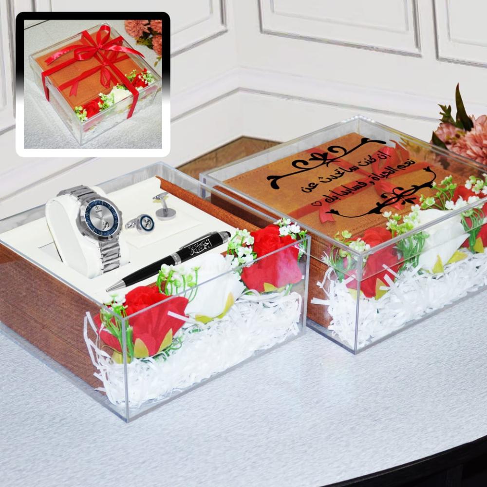 💫 *🎁بوكس أكريليك شفاف مع تنسيق ورد مع كتابة عباره حسب الطلب*💫