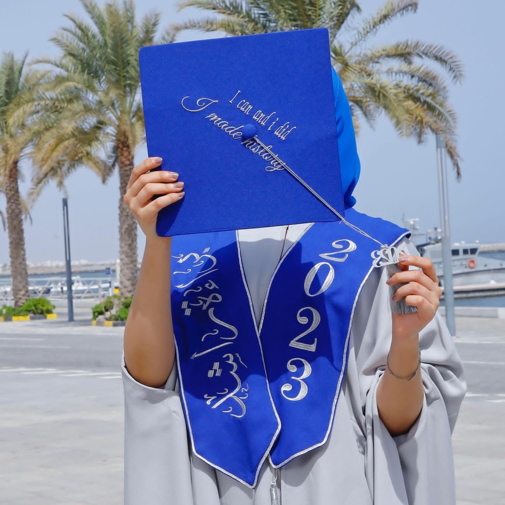 عبايات تخرج 2024 تفصيل العباية و تطريز الوشاح والقبعة حسب الطلب