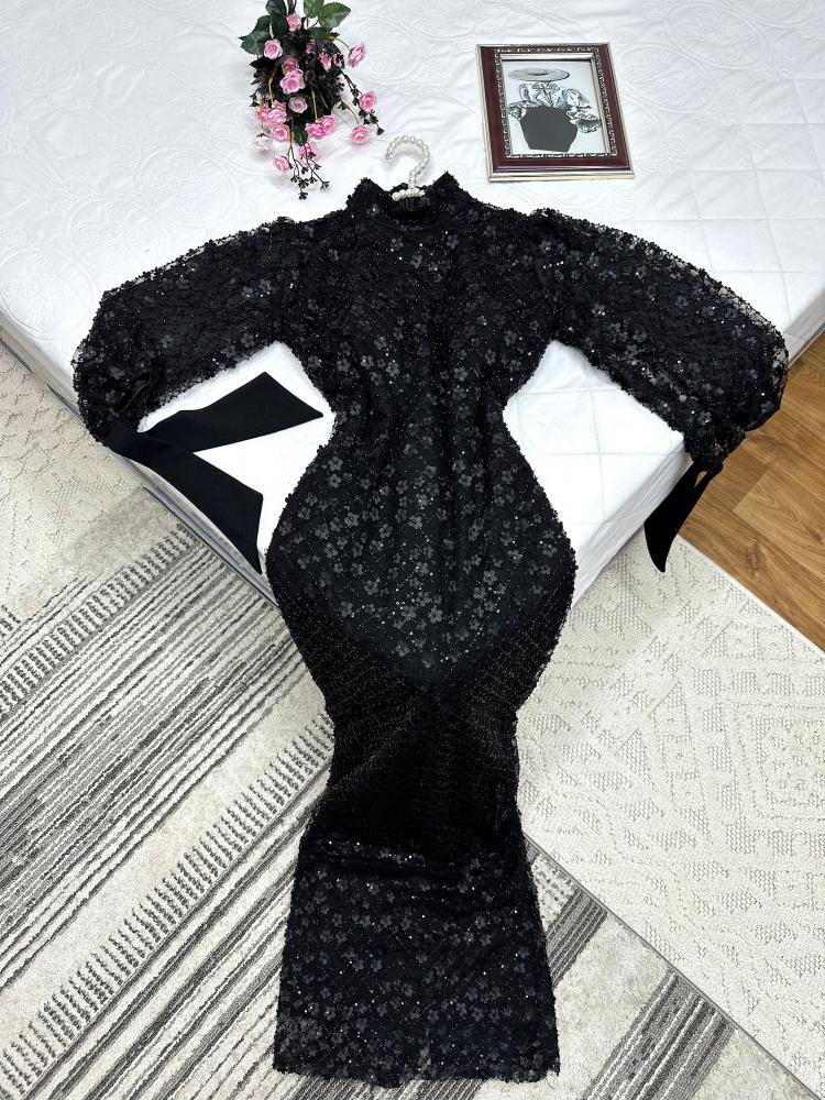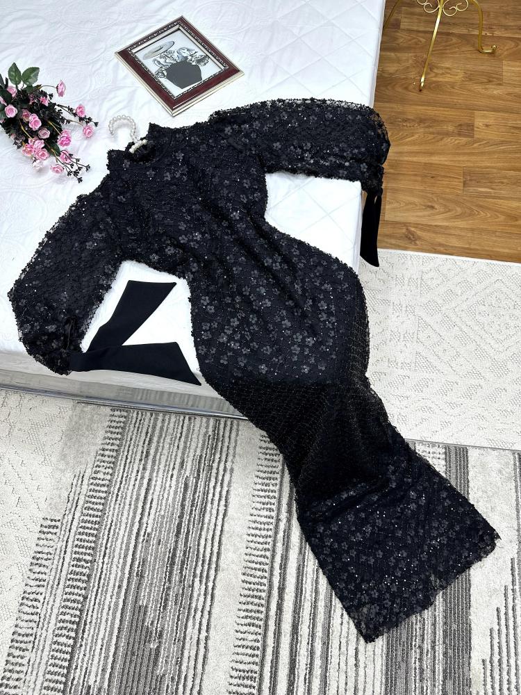 فستان نسائي اسود خامه ترتر مطرز