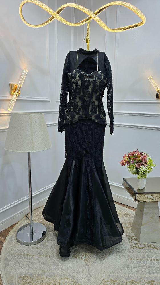 فستان نسائي سهره قماش دانتيل مبطن باربي مع اورجنزا