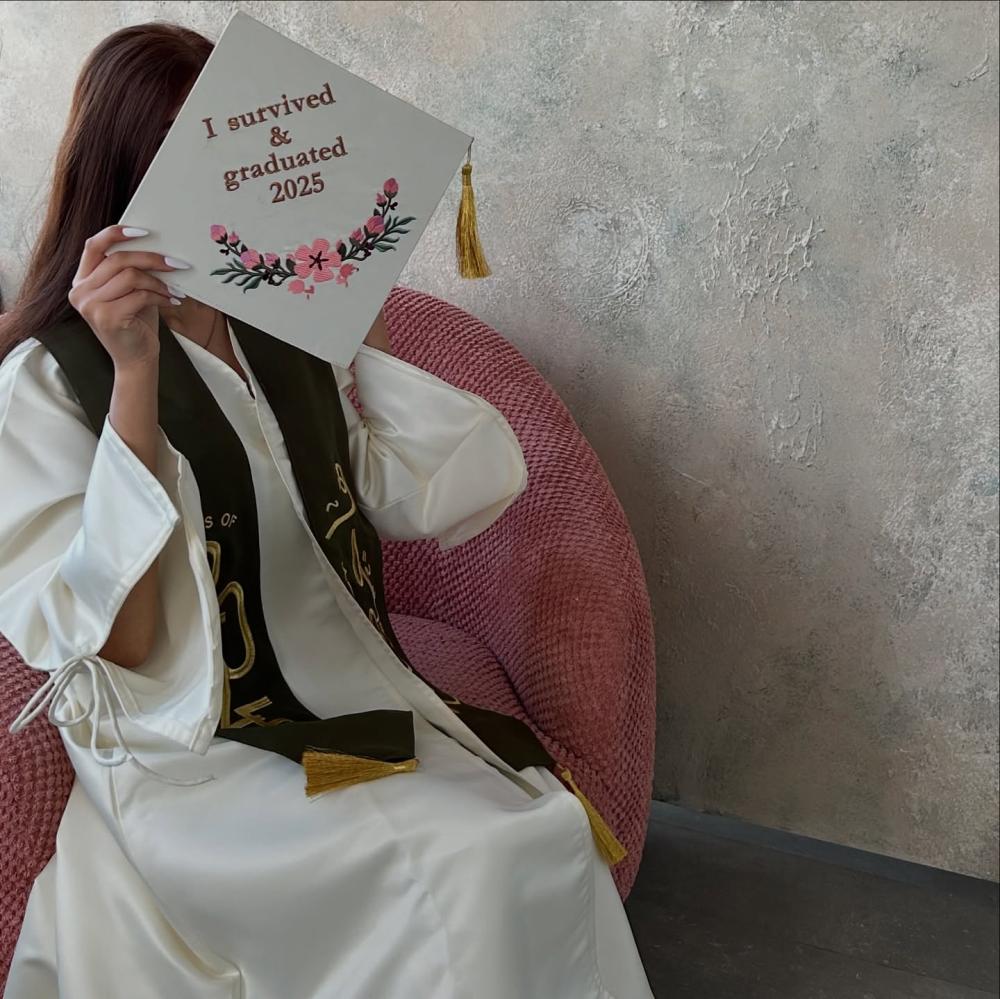 عبايه تخرج 2025 بالاسم والعبارة وسنة التخرج وشعار الدفعة