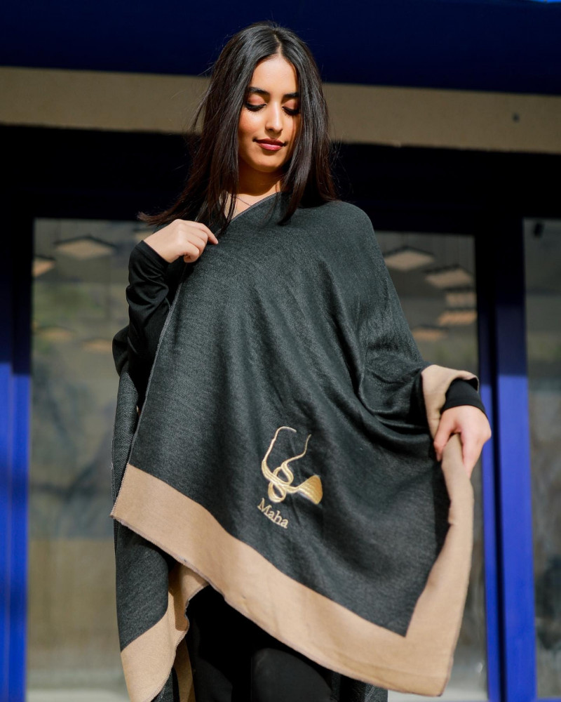 شالات شتوية جوخ مبطنة بفرو نسائي بناتي بالاسم تفصيل وتطريز الاسماء حسب الطلب