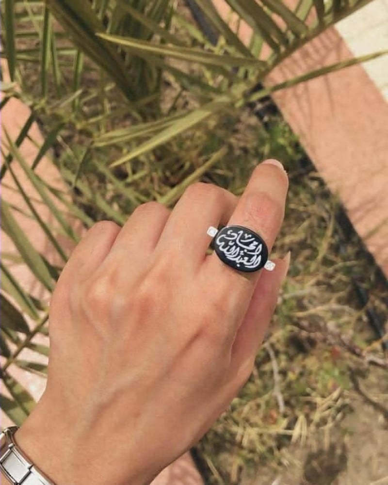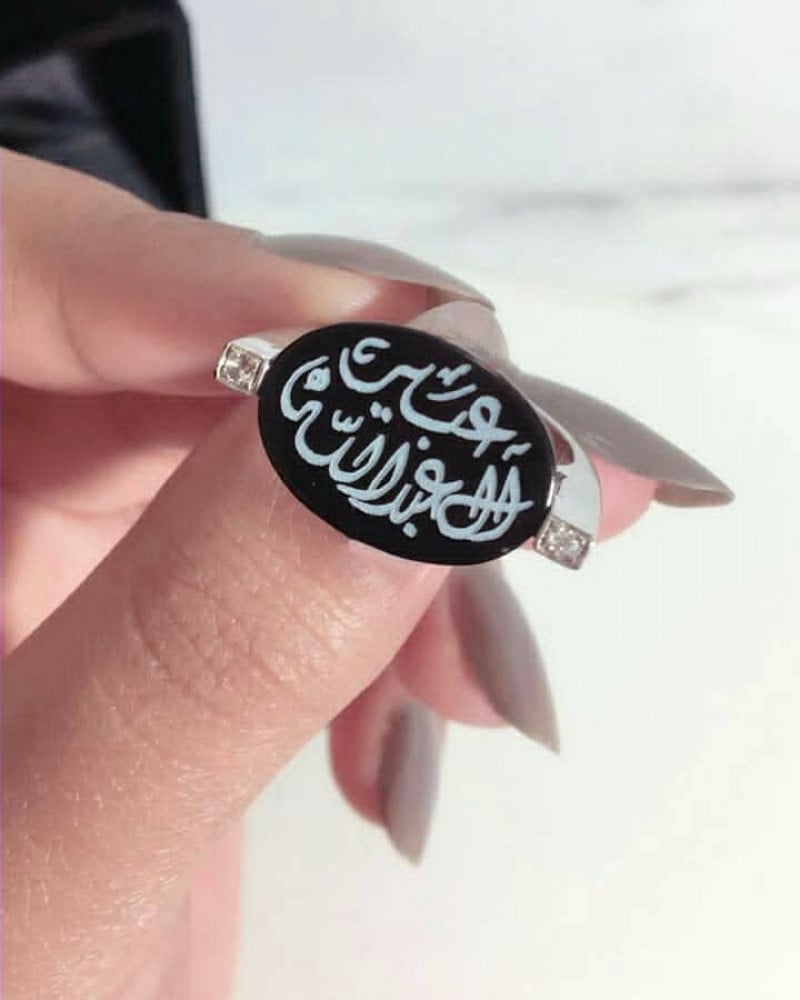 خواتم فضة نسائية إيطالي خالص عيار 925 مع نحت الاسم والسيفين ونخلة او سادة مع حجر الاونكس الكريم او مع عقيق
