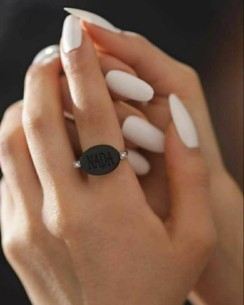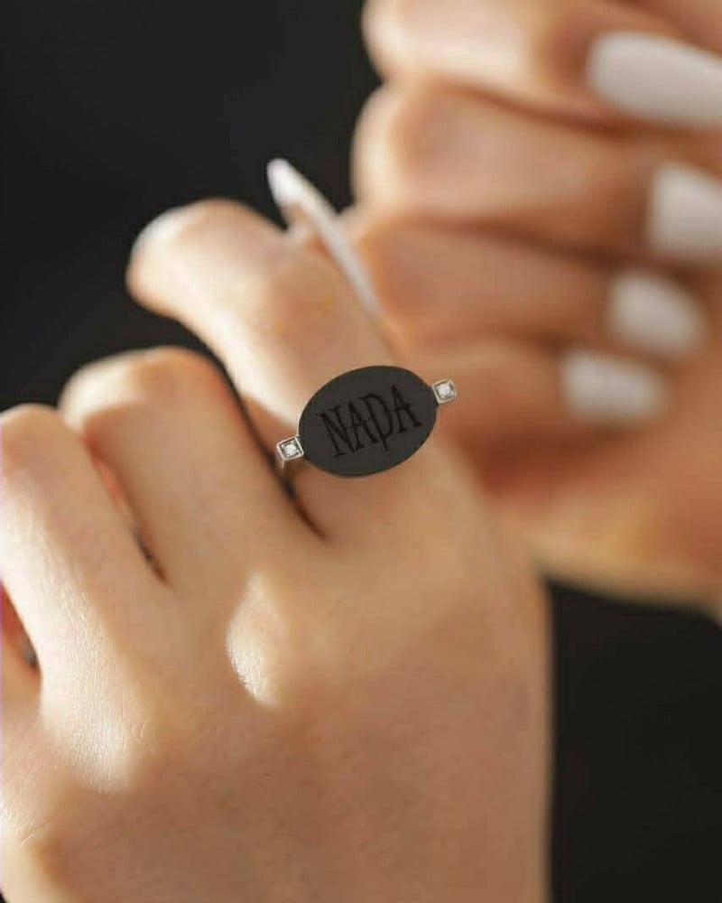 خواتم نسائي فضة إيطالي خالص عيار 925 مع نحت الاسم والسيفين ونخلة او سادة مع حجر الاونكس الكريم او مع عقيق مع زركون