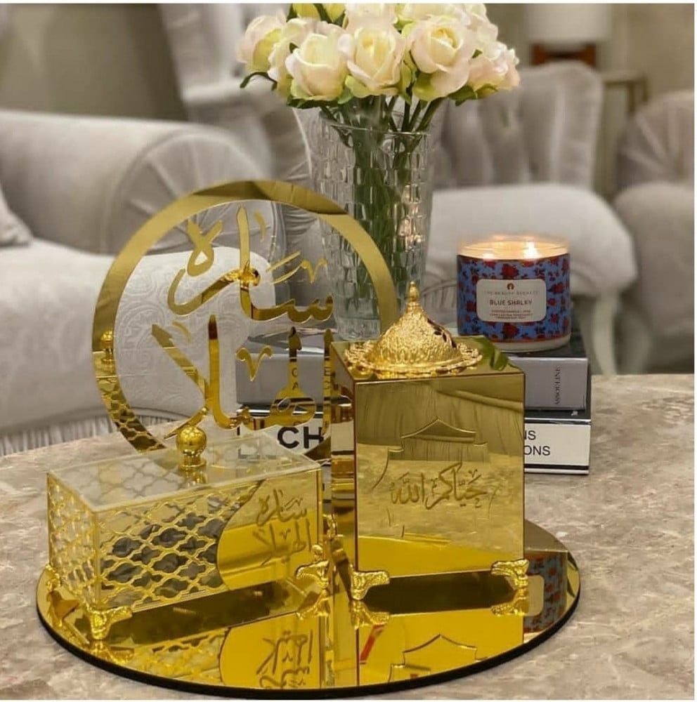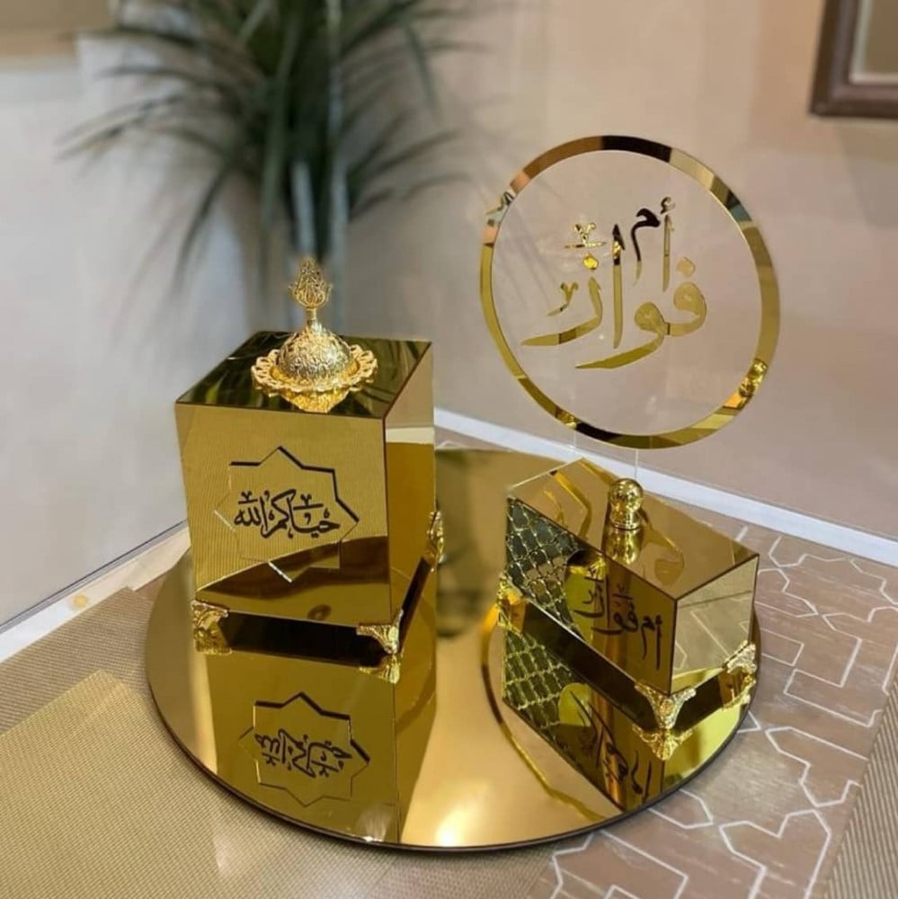 مبخرة وصينية واستاند وحامل مبخرة اكريلك بالاسم حسب الطلب