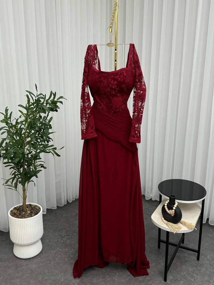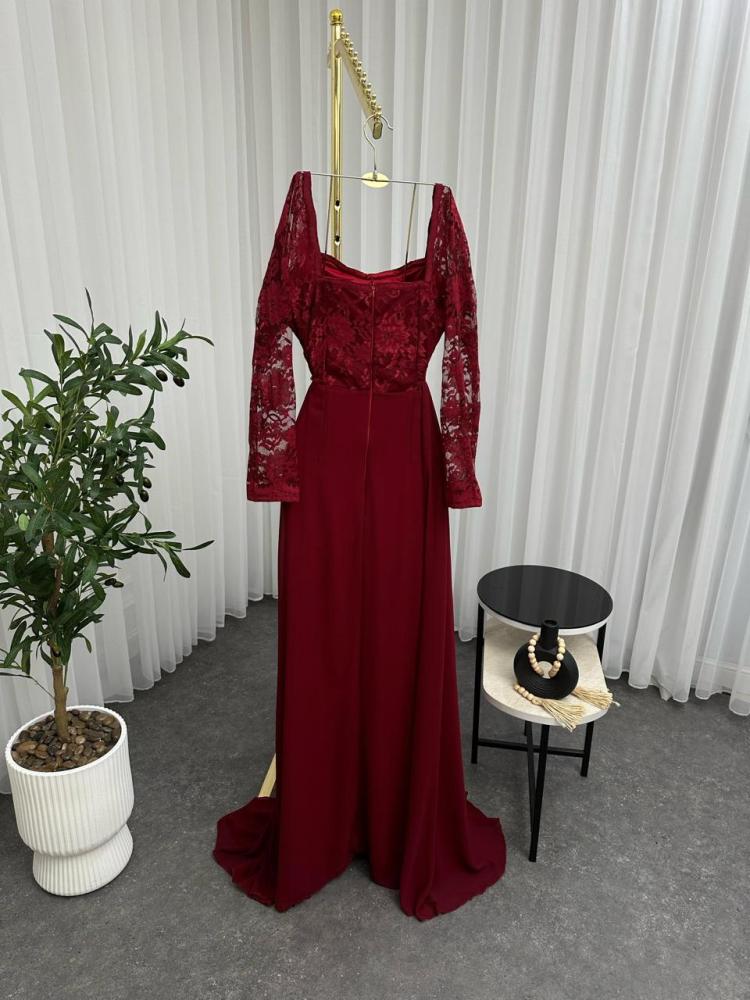 فستان سهره قماش شيفون جورجيت مع دانتيل
