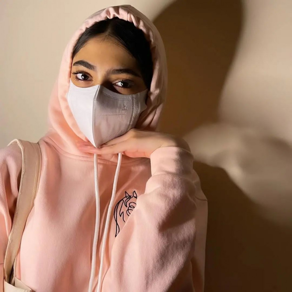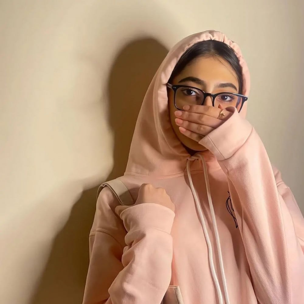 🔹ياقة هودي واكمام طويلة منفوخة .