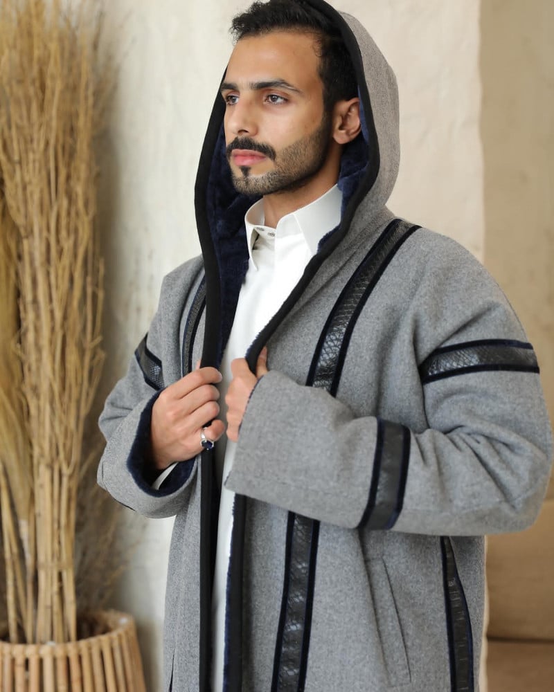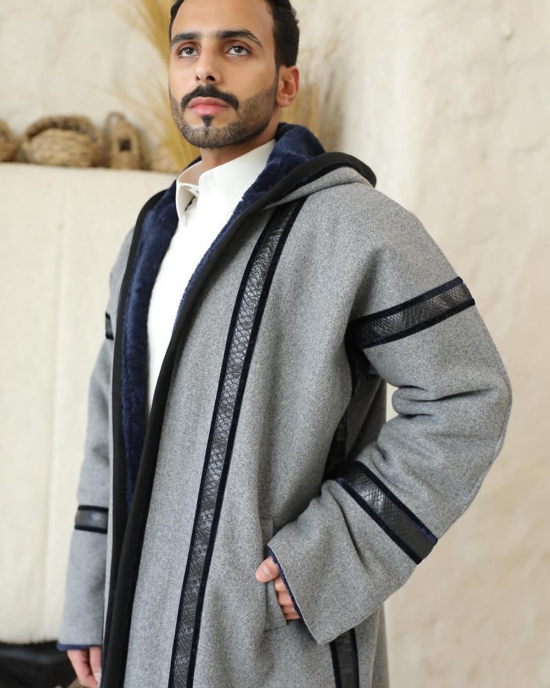 فروات شتويه رجالية انيقة بأطراف جلد فرو شتوي رجالي جوخ مع اطراف جلد