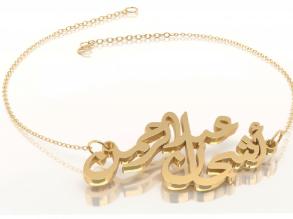 مطلي بالذهب عيار 21 قيراط.يمكنك تخصيص أي اسم أو كلمة (عربي أو إنجليزي).متوفر طلاء ذهبي أو فضي (روديوم).ضمان سنتين على اللون من لافيولا.سمك 0.7 مم.تأتي داخل علبة هدايا بسيطة وكيس عليها شعار لافيولا