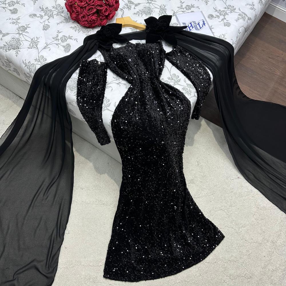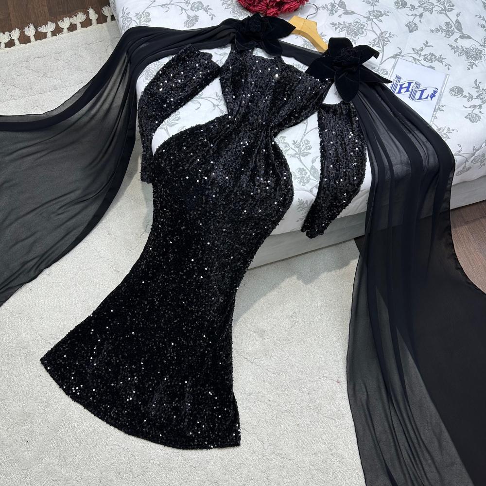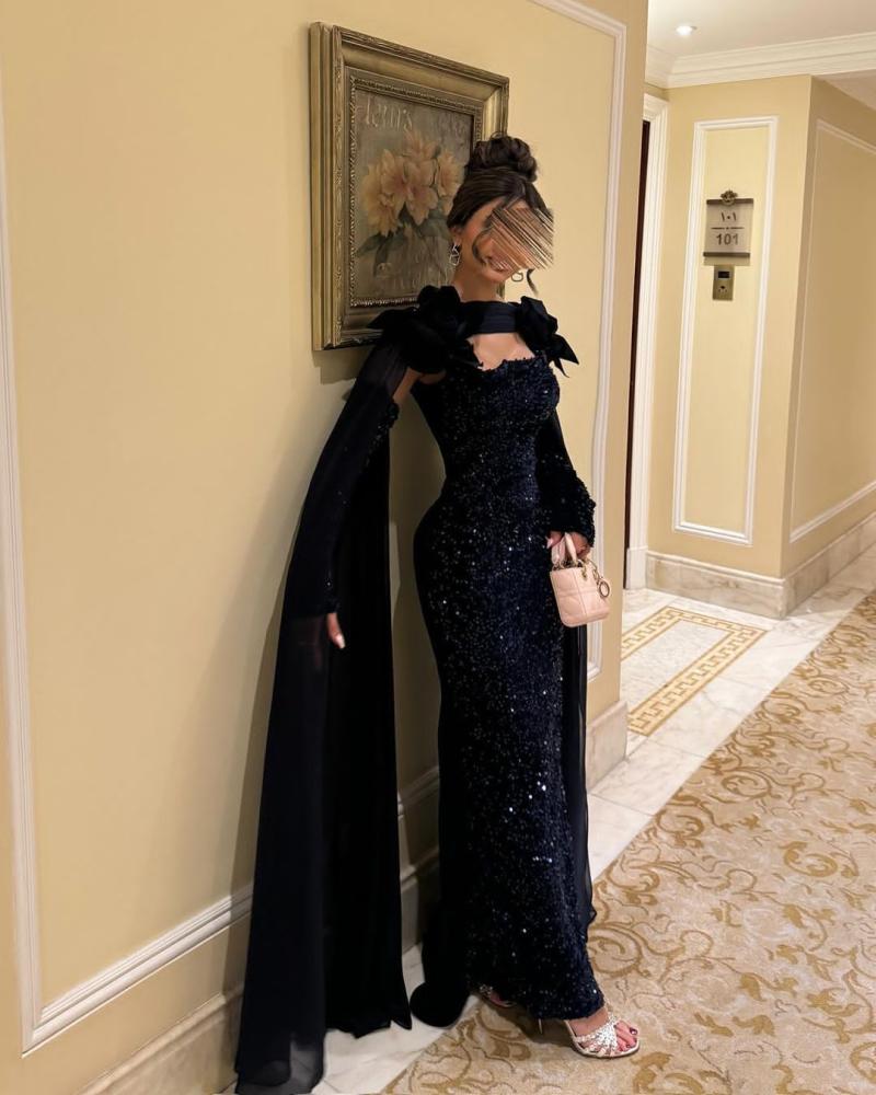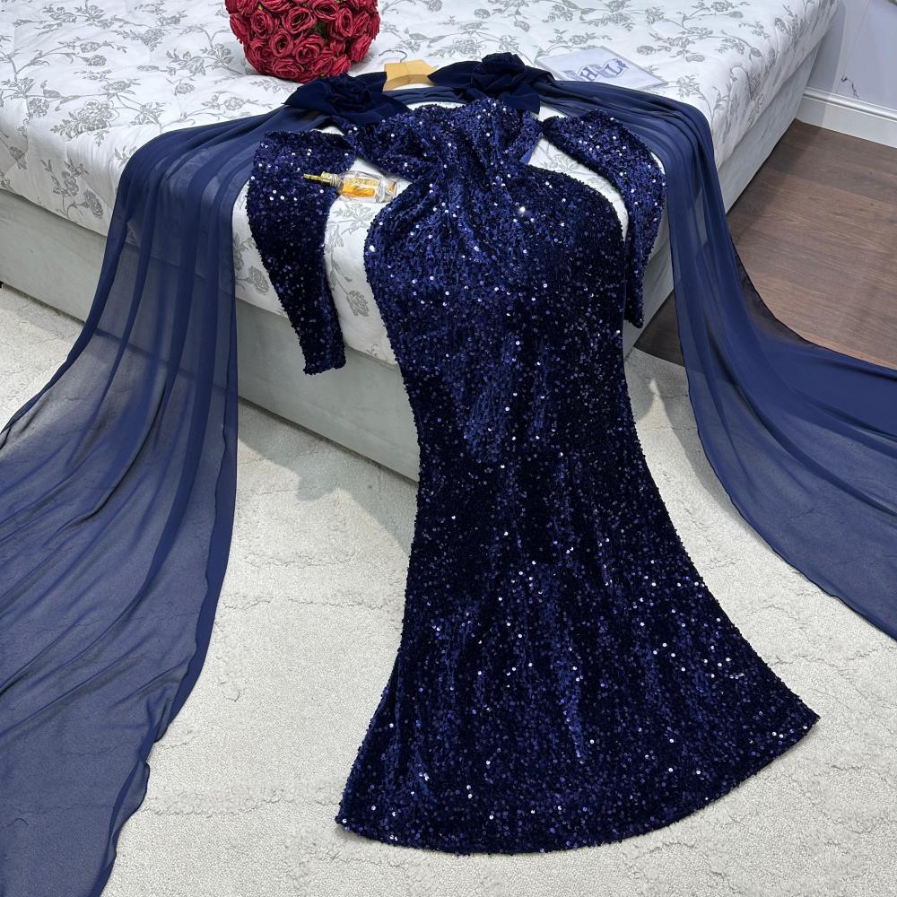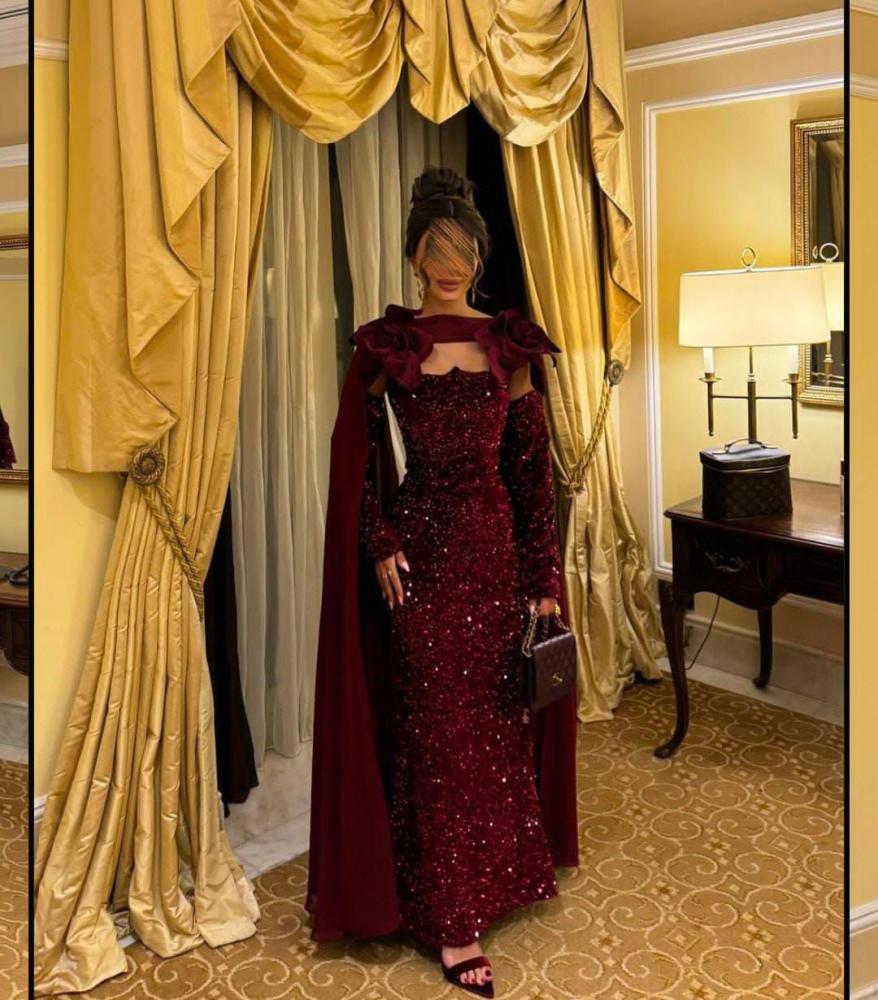 فستان نسائي سهره قماش شيفون مع ترتر مع مخمل
