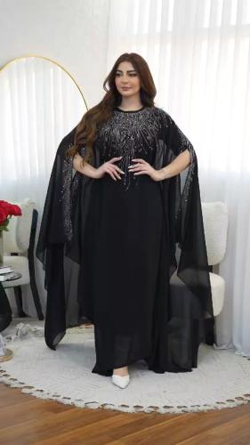 فستان نسائي سهره قماش شيفون مع ترتر مع مخمل
