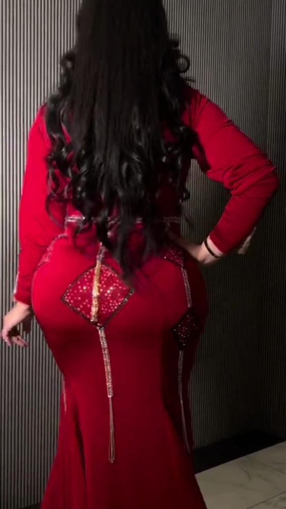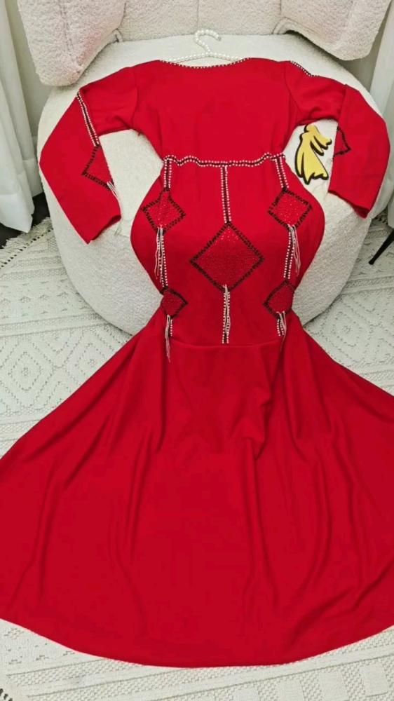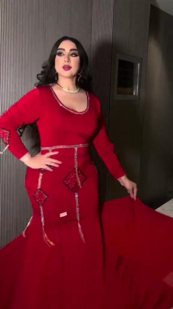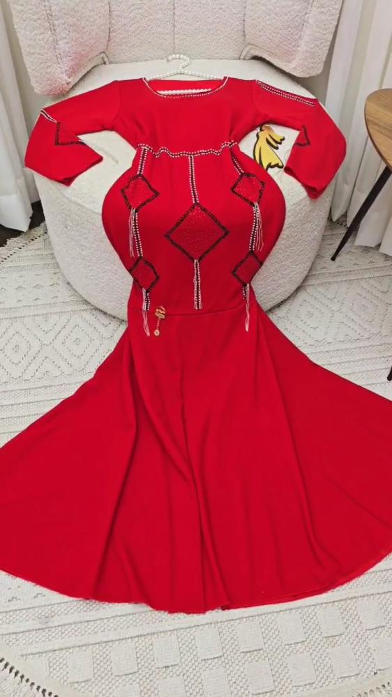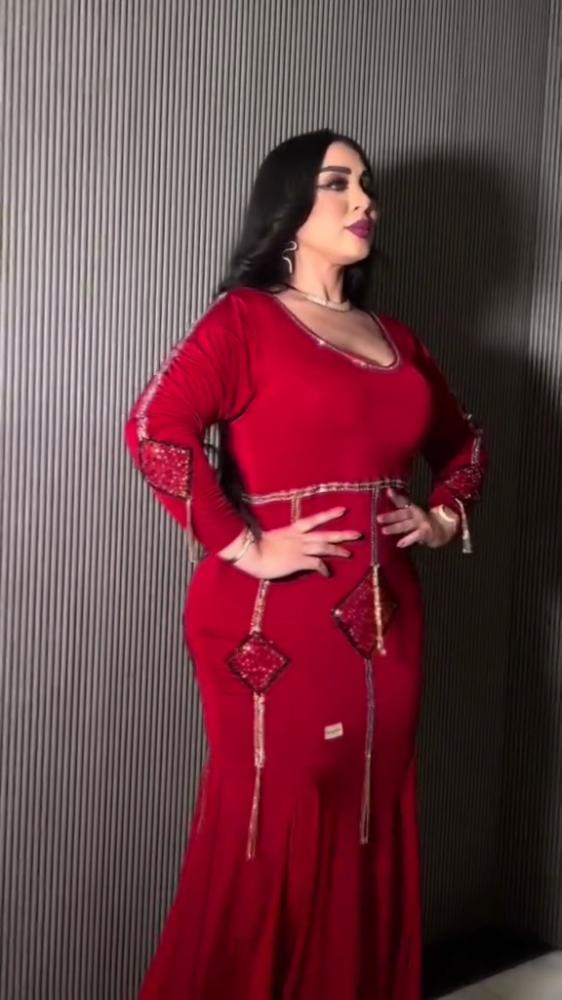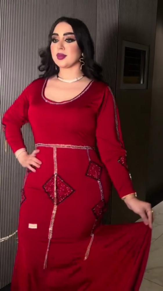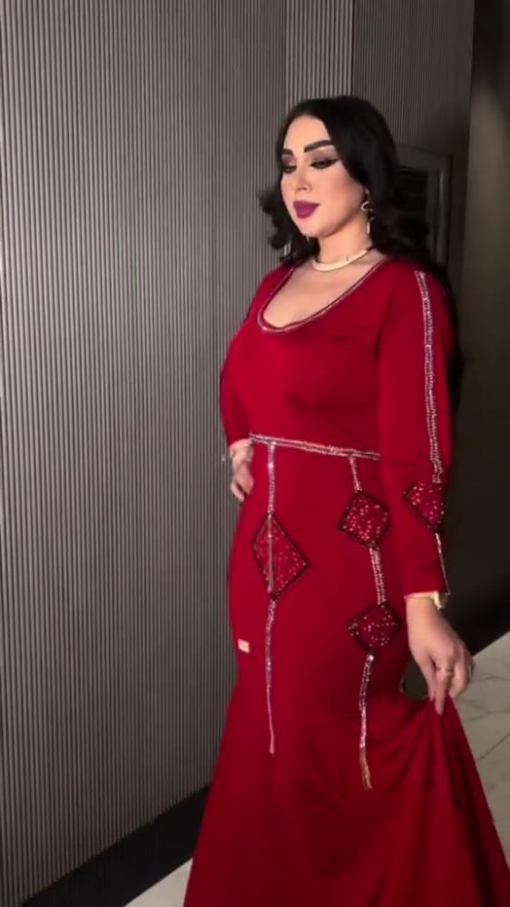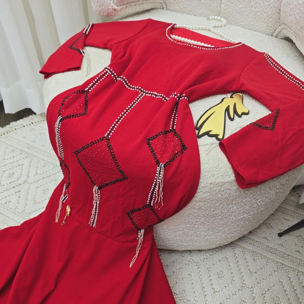 فستان نسائي احمر قماش كريب تطريز فصوص