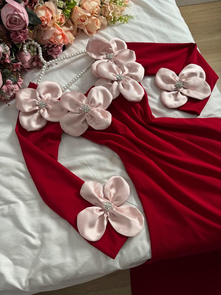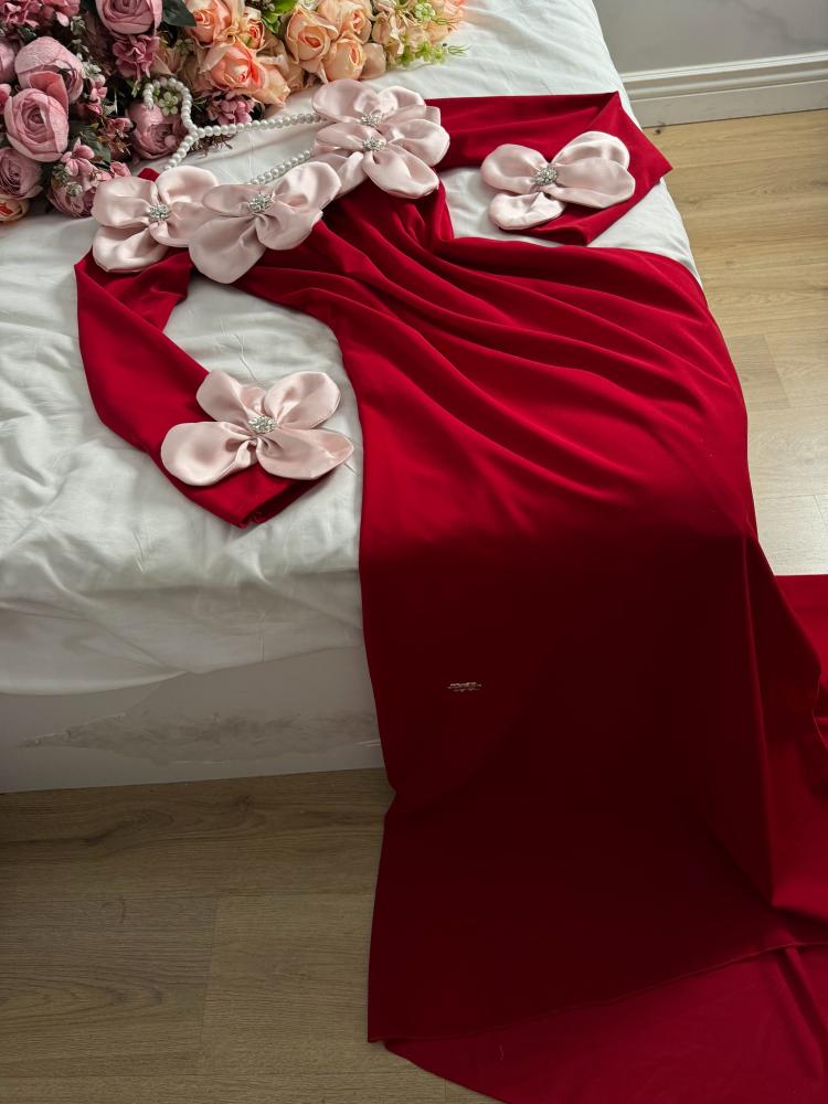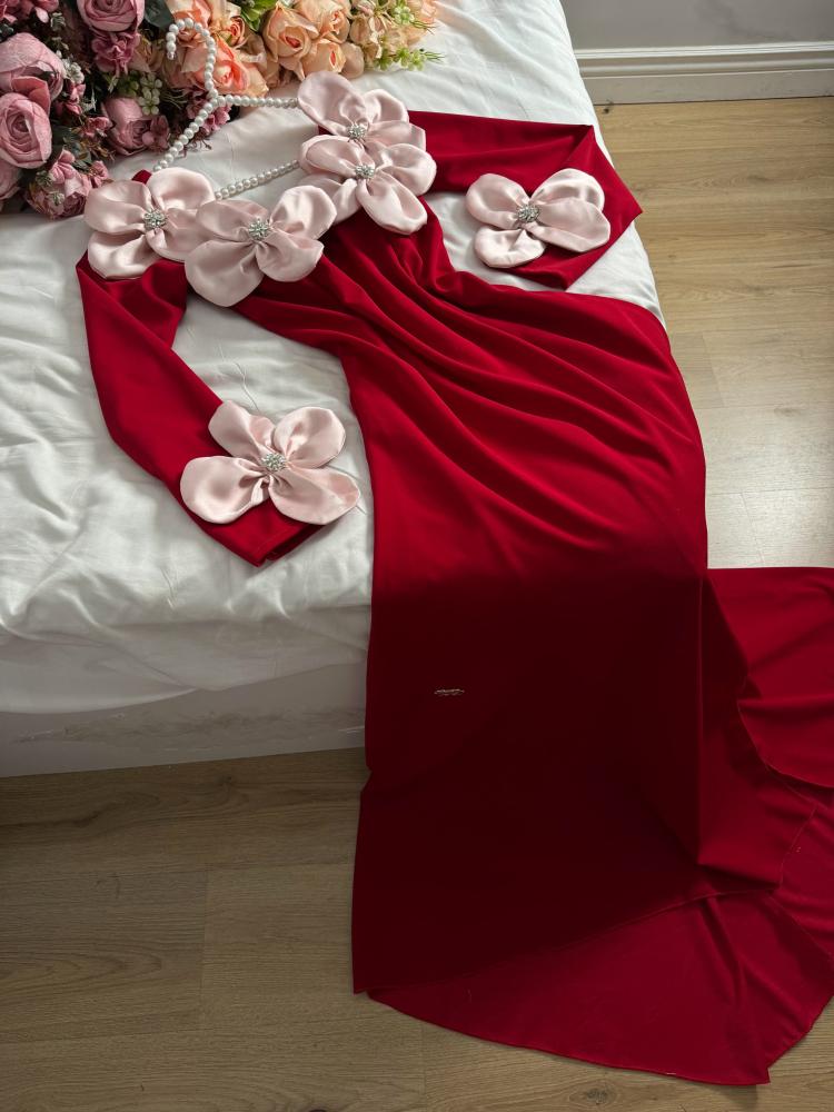 الخامه :كريب استرتش راااقي + ورد ميكادو واقف + كرستال بالورد