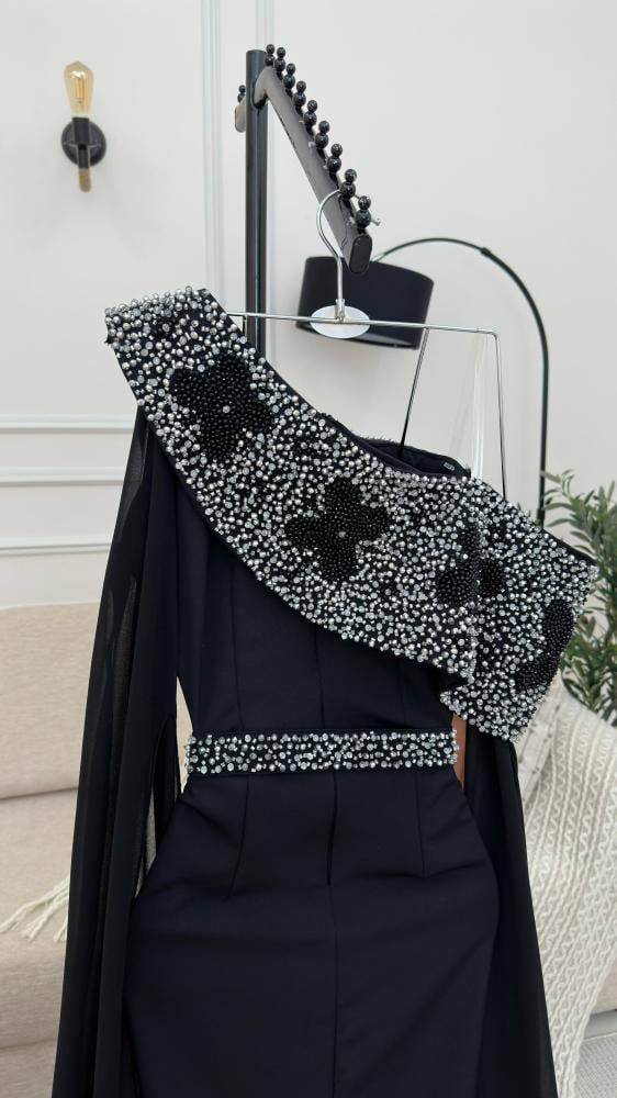 فستان نسائي سهره قماش باربي ليزر مع كم جورجيت