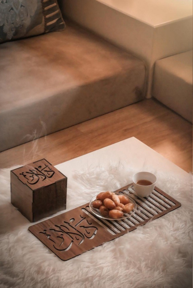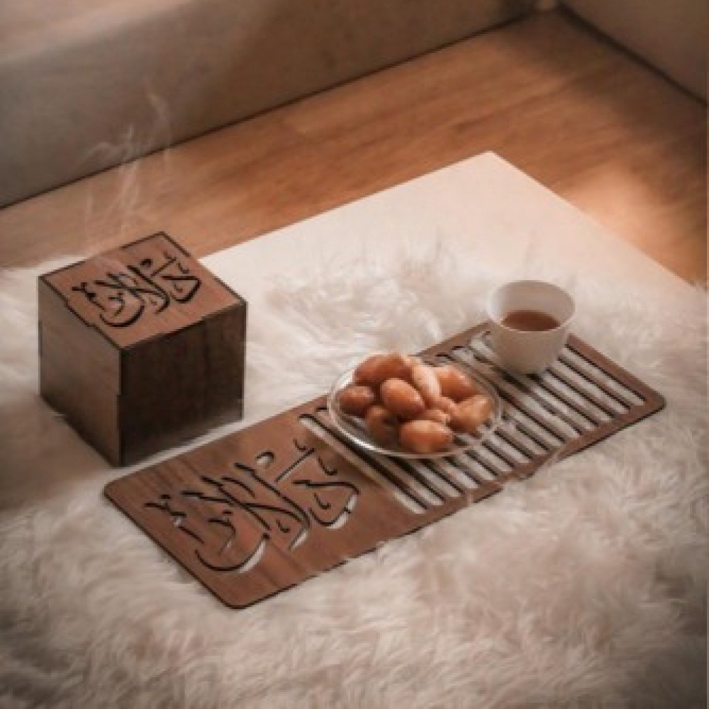 مبخرة الاحرف العربية طقم مبخرة خشبية مع صينية وعلبة عود