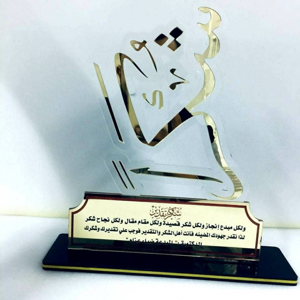 دروع شكر وتقدير درع تهنئة درع شكر وعرفان بتصميم حسب الطلب