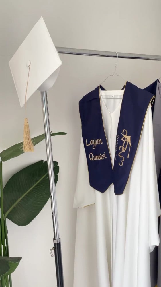 عبايات تخرج 2023 تفصيل العباية و تطريز الوشاح والقبعة حسب الطلب