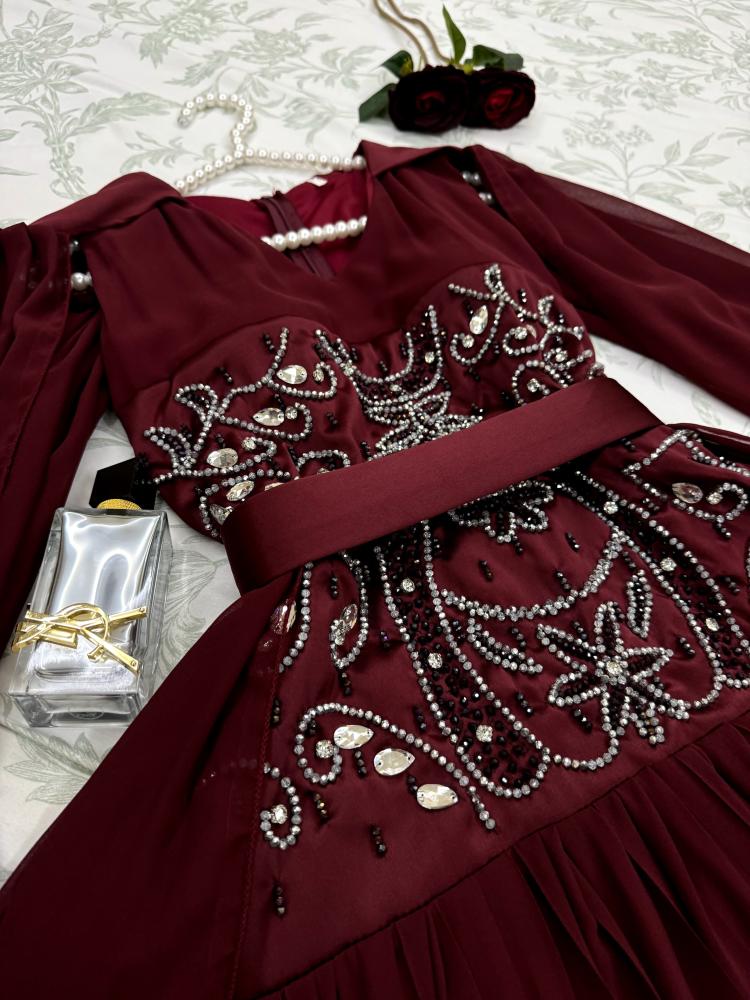 فستان سهرة نوع القماش _ جورجيت تطريز الأصلي