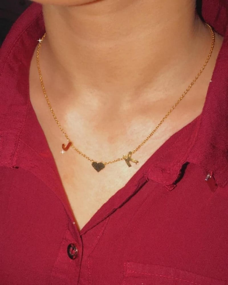 سلسال مميز جدا بتصميم الاسم مع الحرف بالعربي أو الإنكليزيي يمكن حتى طلب اسمين في السلسال واحد مطلي بطلاء ذهب عيار 21 مع ضمان سنتين على اللون بسمك 0.7 مم وطبعا مع علبة مخصصة وكيس