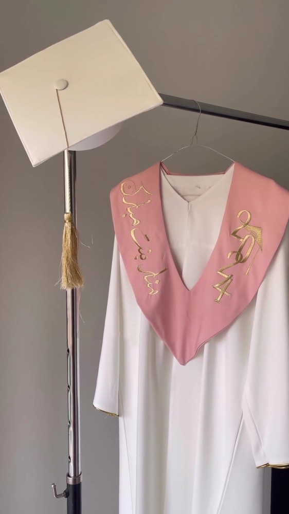عبايات تخرج 2024 تفصيل العباية و تطريز الوشاح والقبعة حسب الطلب