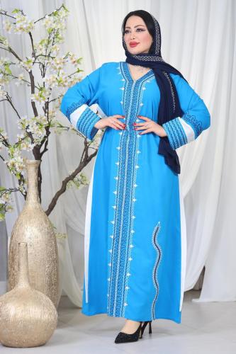 فستان نسائي كريب خامه ميكادو مع تفته دبل كلوش صديرية ترتر سهرة