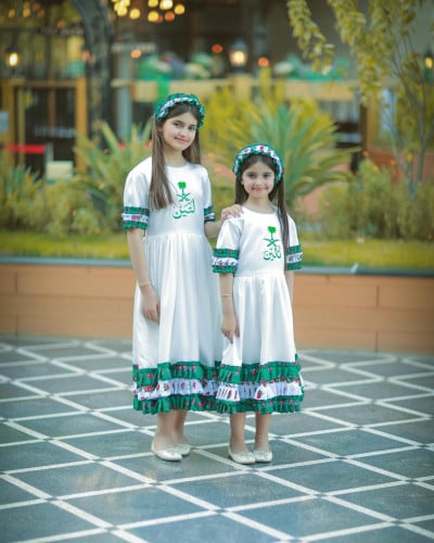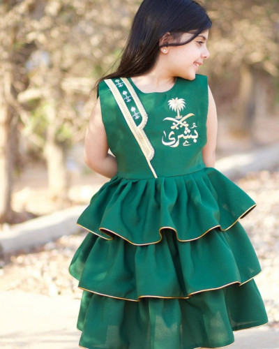 فستان وطني بناتي ليوم التاسيس الوطني قماش كريب مع سدو