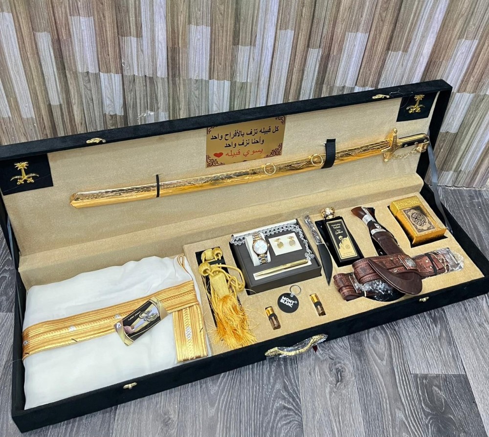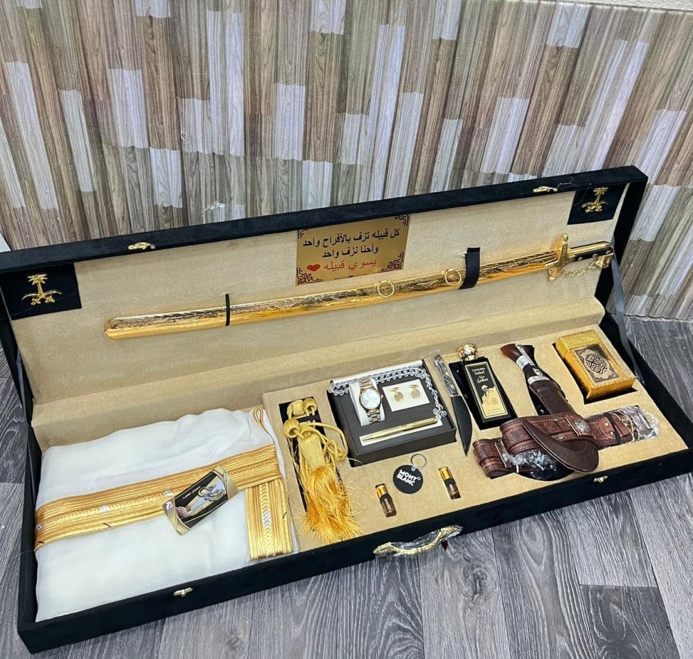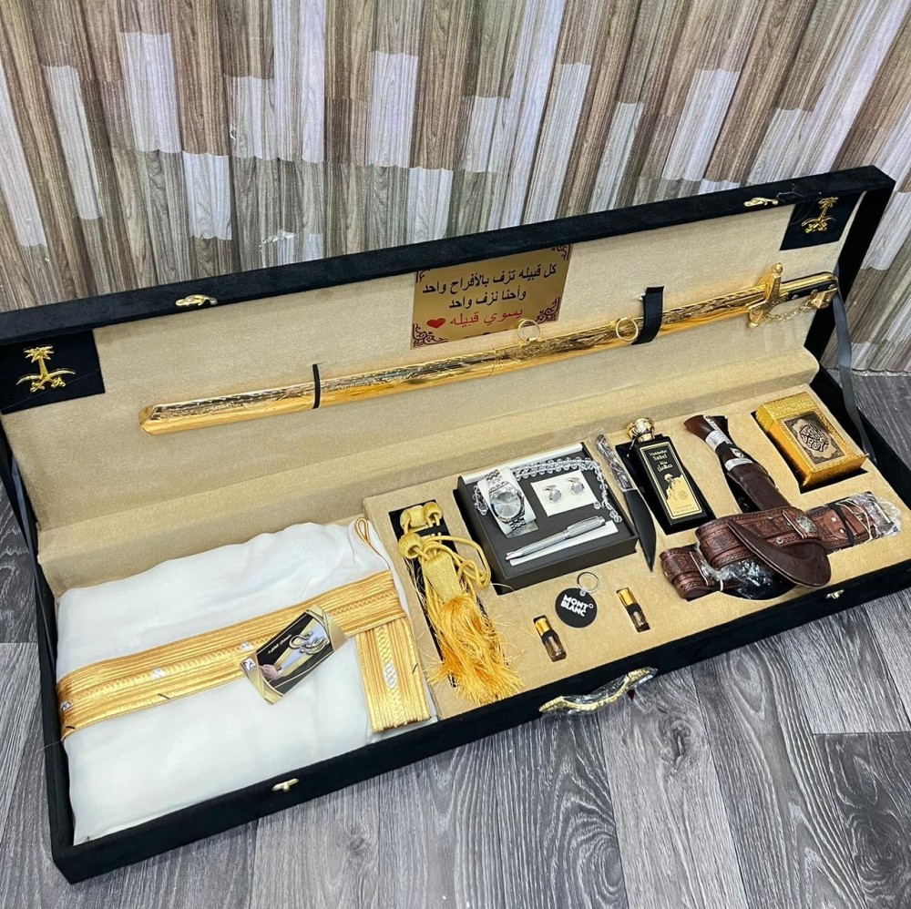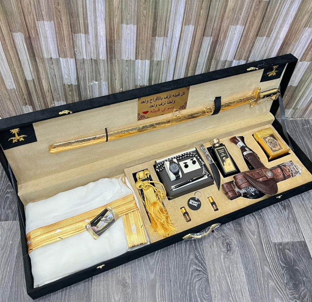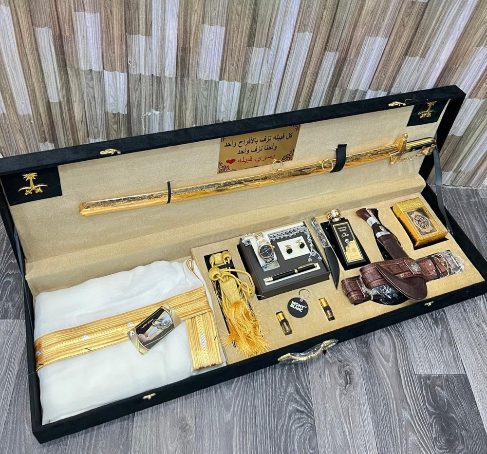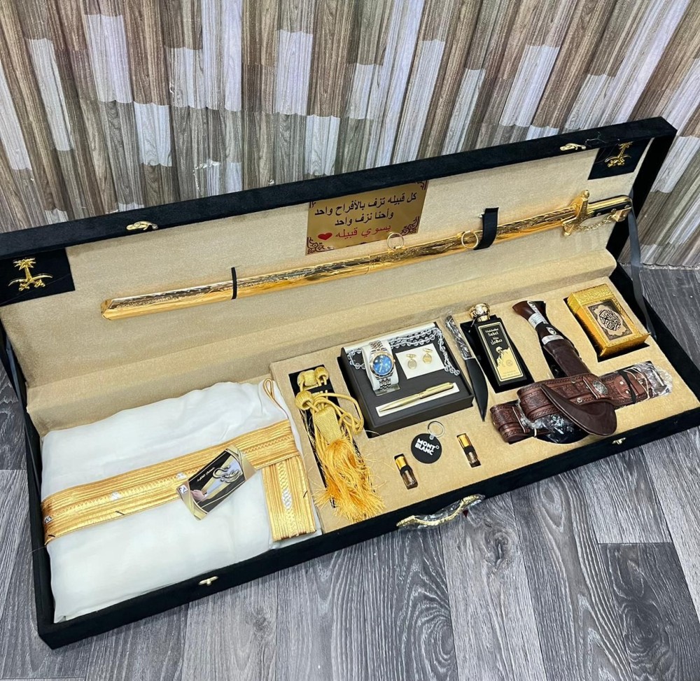 *هديه تذكاريه تفوووق الخيال* *شي فخخخخخخخخم* 👏🏻👏🏻 *♥️افخم هدييييييه ♥️* لعشاق التميز والاناقه *😍 بوكس رجالي متكاااامل 😍بشت صناعه سوريه المقاسات 26 الى 30 😍سيف صناعه دمشقي 😍جنبيه جيزاني + خوجه 😍ساعه فخمه ظمان سنه مويه مكينه 😍كبك رجالي 😍قلم رجالي 😍سبحه رجالي 😍2 توله عطر عوده 😍عطر 100 ملي 😍مصحف 😍ميداليه منت بلان 😍علبه طقم فخمممممه نفس الصوره *👌🏻عبارة حسب طلب الزبون 👌🏻* سعر الطقم كامل 590 ريال فقط