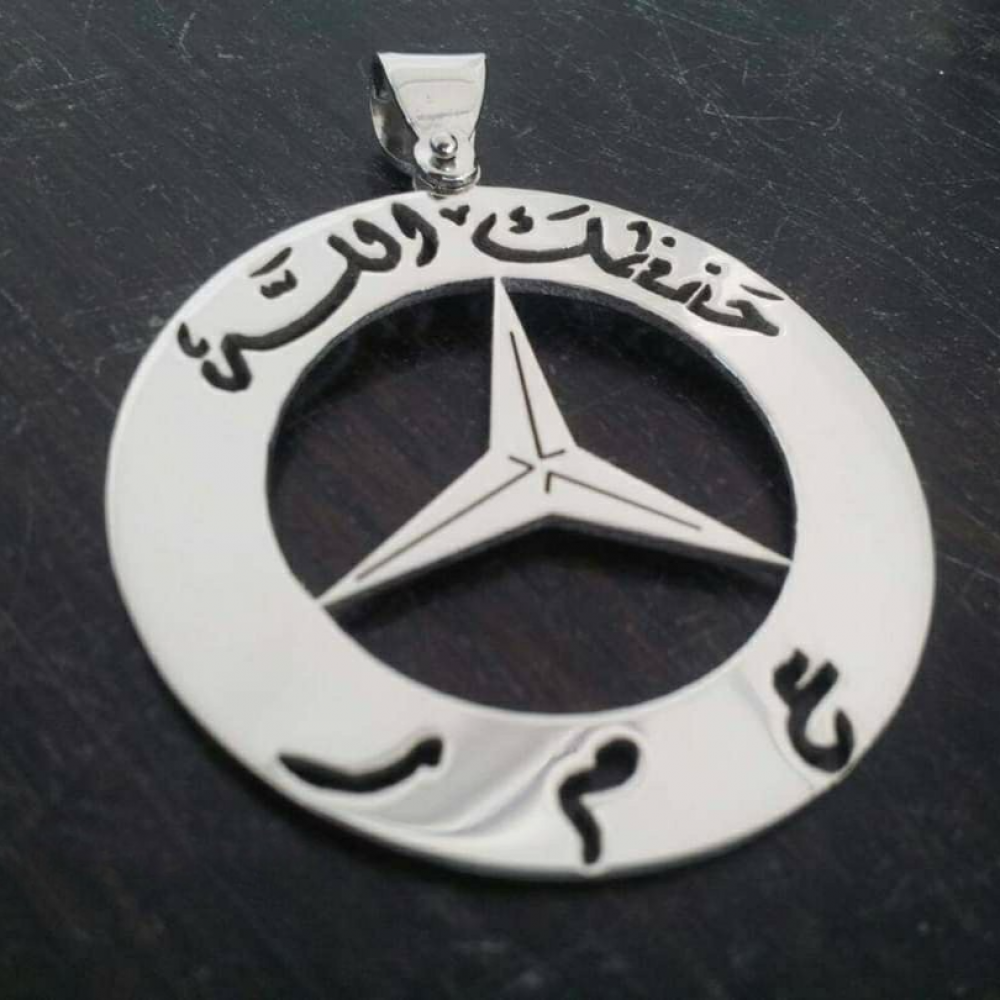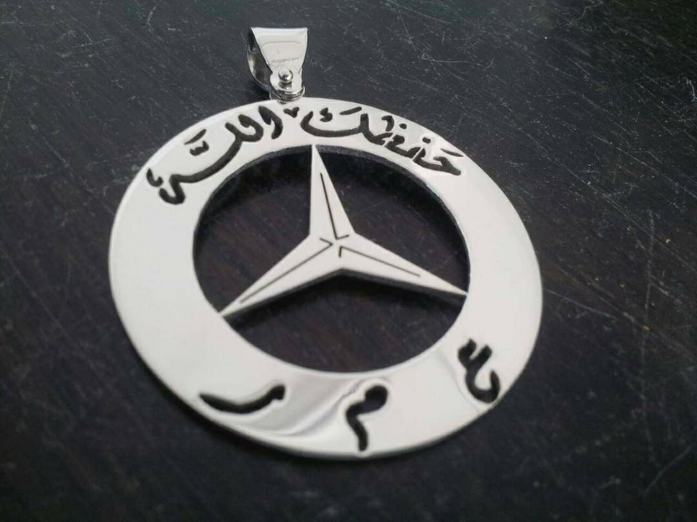تعليقة سيارة بتصميم شعار سيارتك والاسم والعبارة او شكل تصميم ميدالية على حسب رغبتك