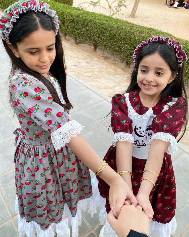 فستان وطني بناتي ليوم التاسيس الوطني قماش كريب مع سدو