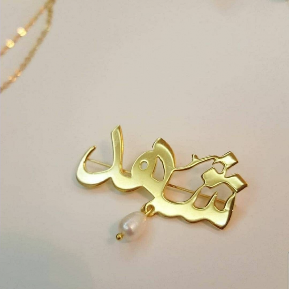 بروش بتصميم الاسم والعبارة حسب الطلب مع الزركون