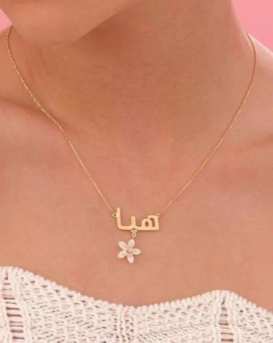 مطلي بالذهب عيار 21 قيراط.يمكنك تخصيص أي اسم أو كلمة (عربي أو إنجليزي).متوفر ذهبي أو فضي.