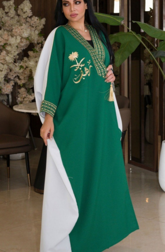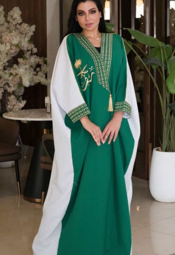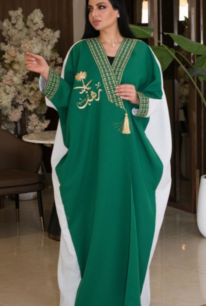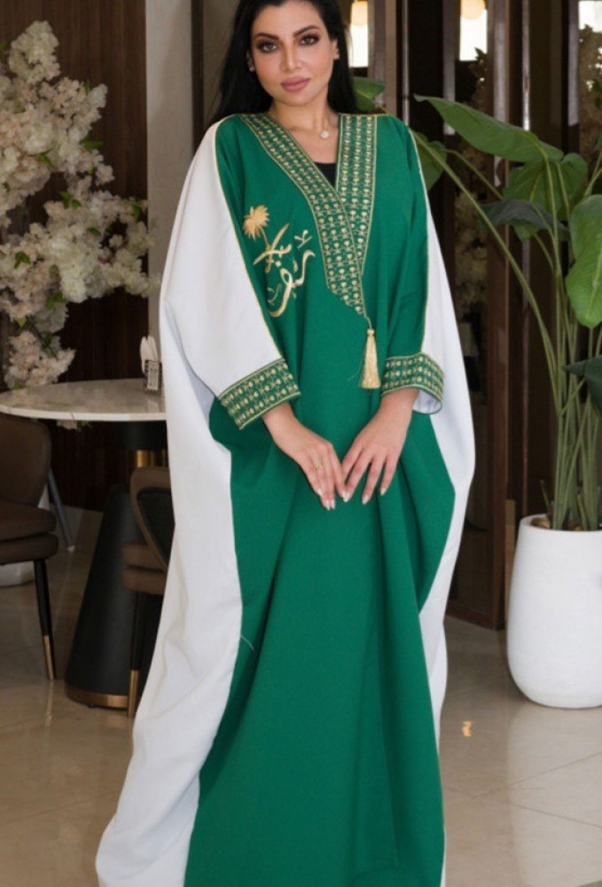 بشت اليوم الوطني نسائي بالاسم مع السيفين ونخلة حسب الطلب