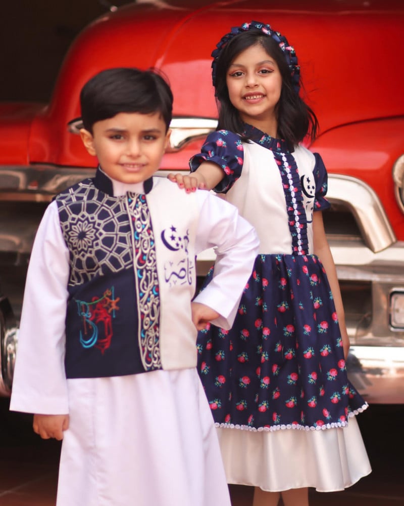 فستان شالكي بناتي مع ربطة فساتين وازياء رمضان