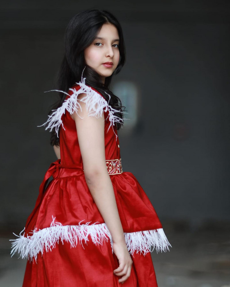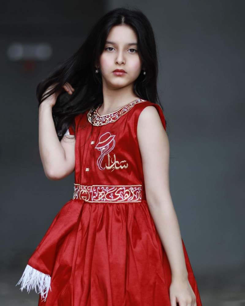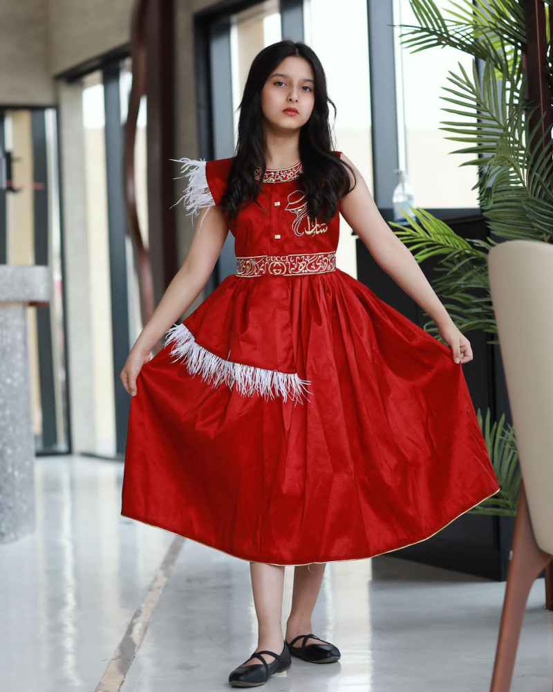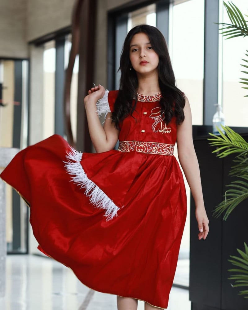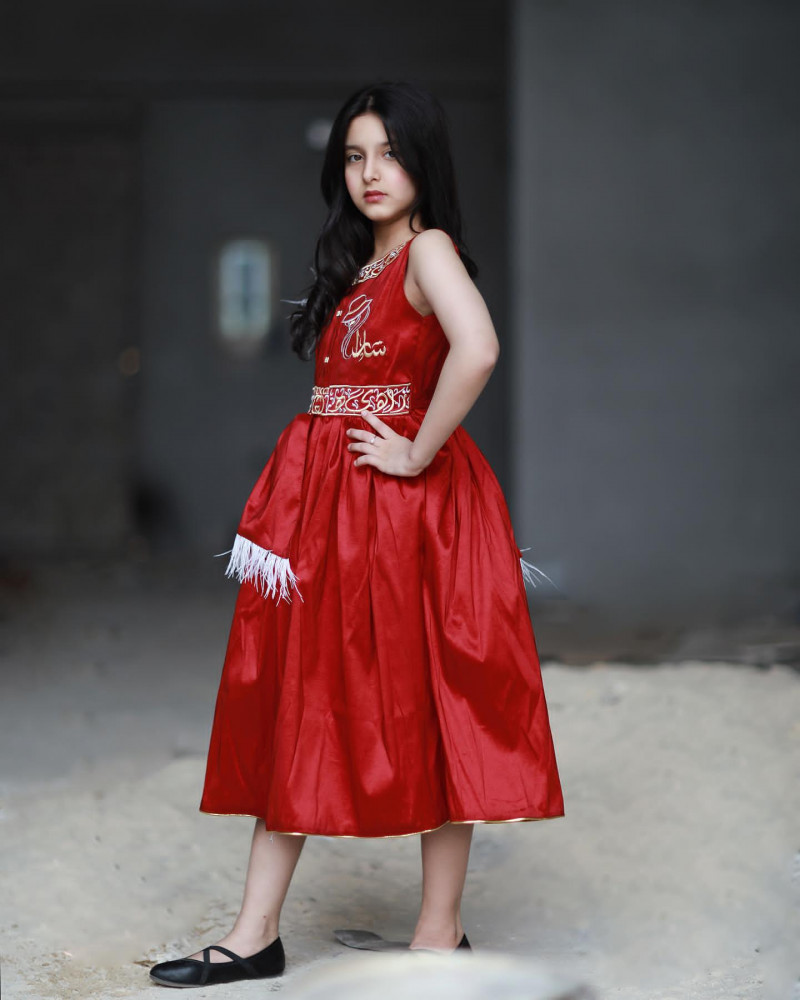 فستان شالكي بناتي بالاسم مع ربطة فساتين وازياء رمضان