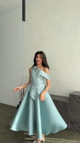 فستان سهره قماش تفته استرتش مع دانتيل