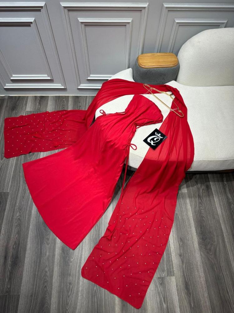 فستان سهرة قماش تفته مع كريب مع جورجيت