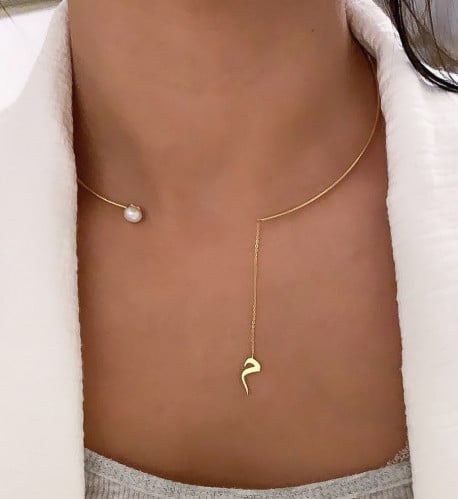 سلسال الحرف المرصع بالزركون مع لؤلؤ بتصميم حسب الطلب