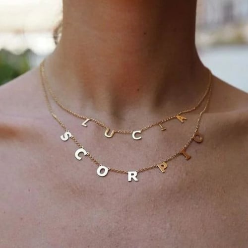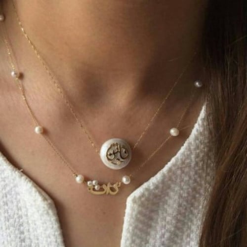 سلسلة بتصميم الاسم مع صدف افريقي ومع حجر كريم حسب الطلب اسم وبرج او حرف وبرج