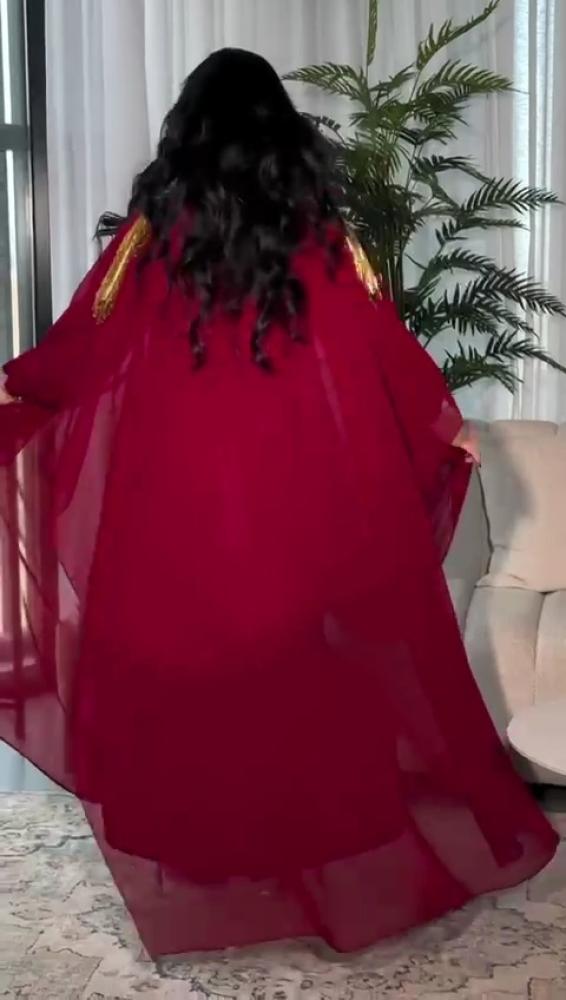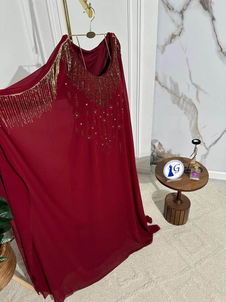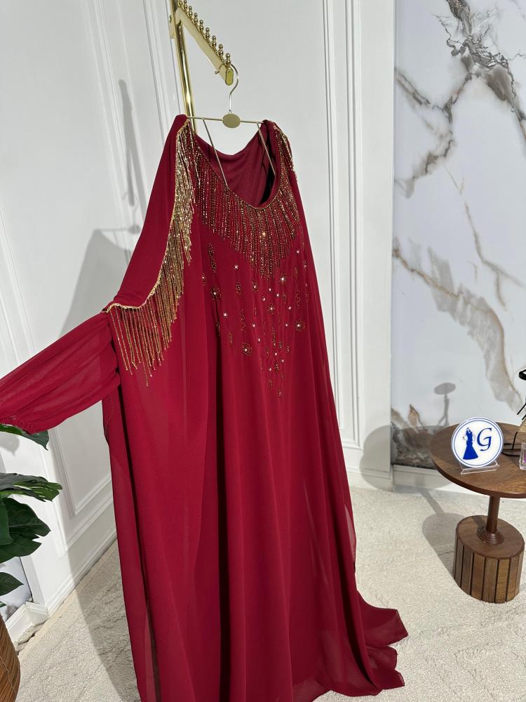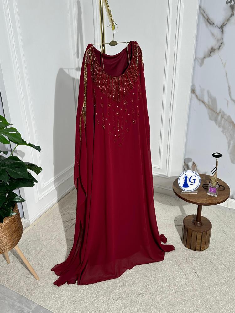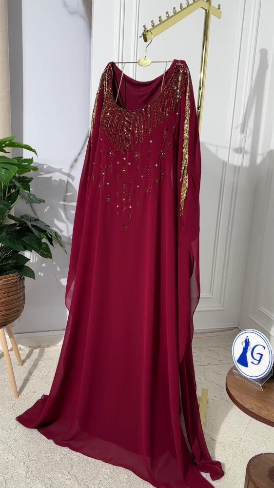 فستان نسائي سهره قماش شيفون مطرز بطانة كريب استرتش