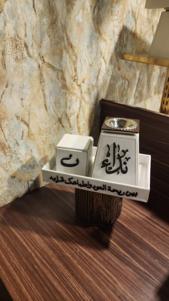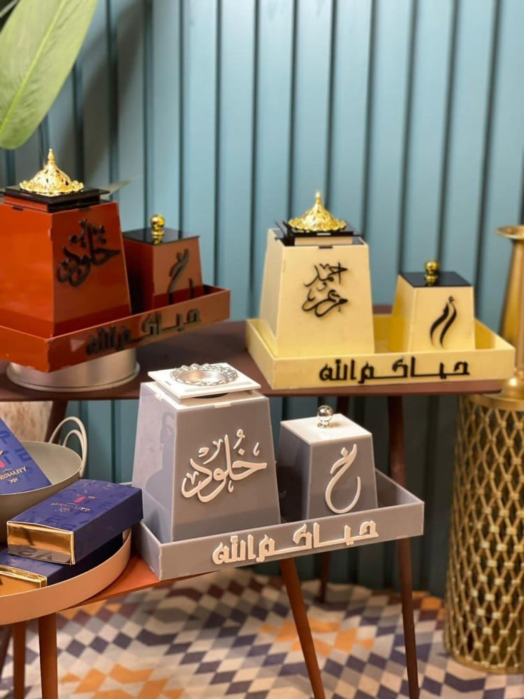 متوفر لون الكتابة باللون الذهبي والفضي والابيض