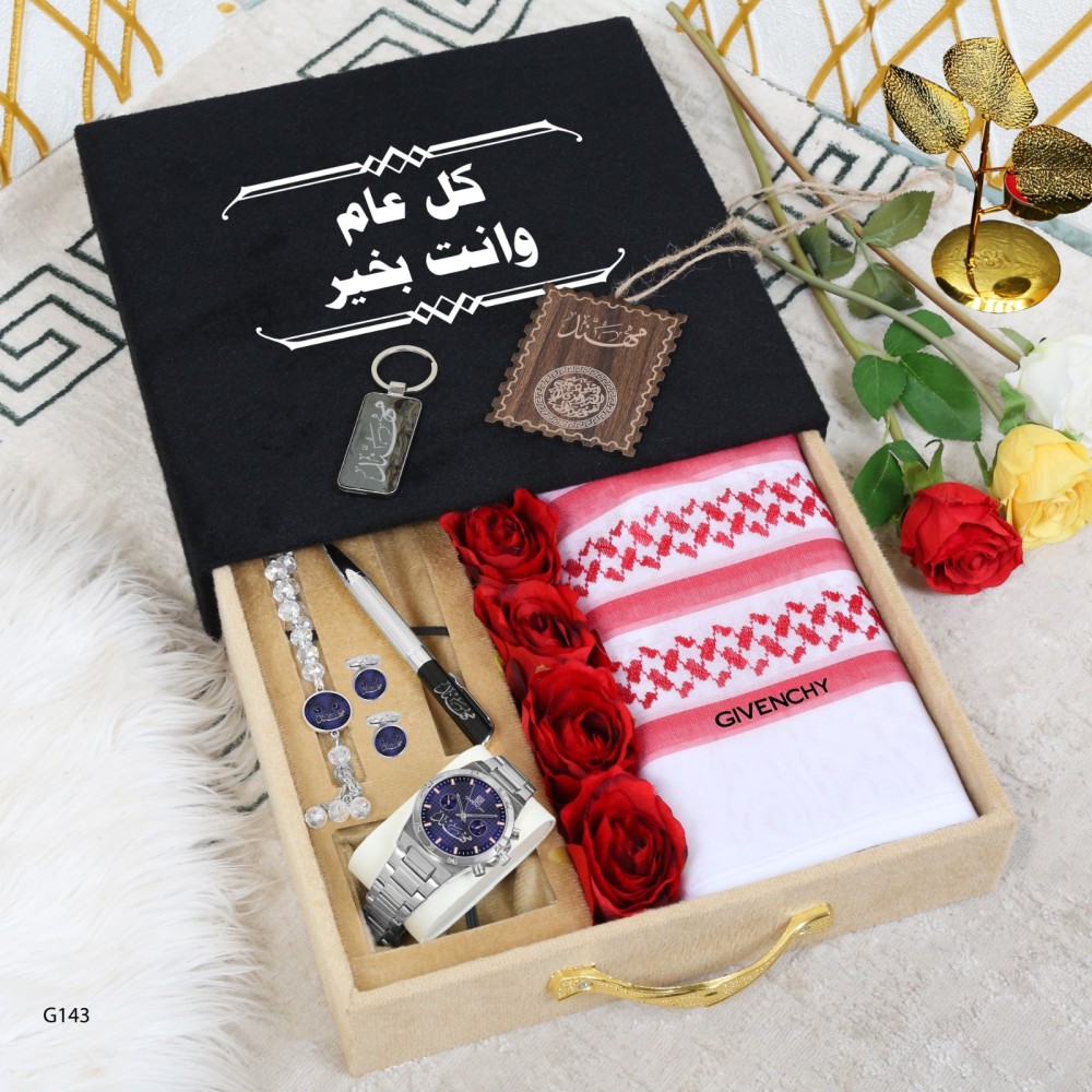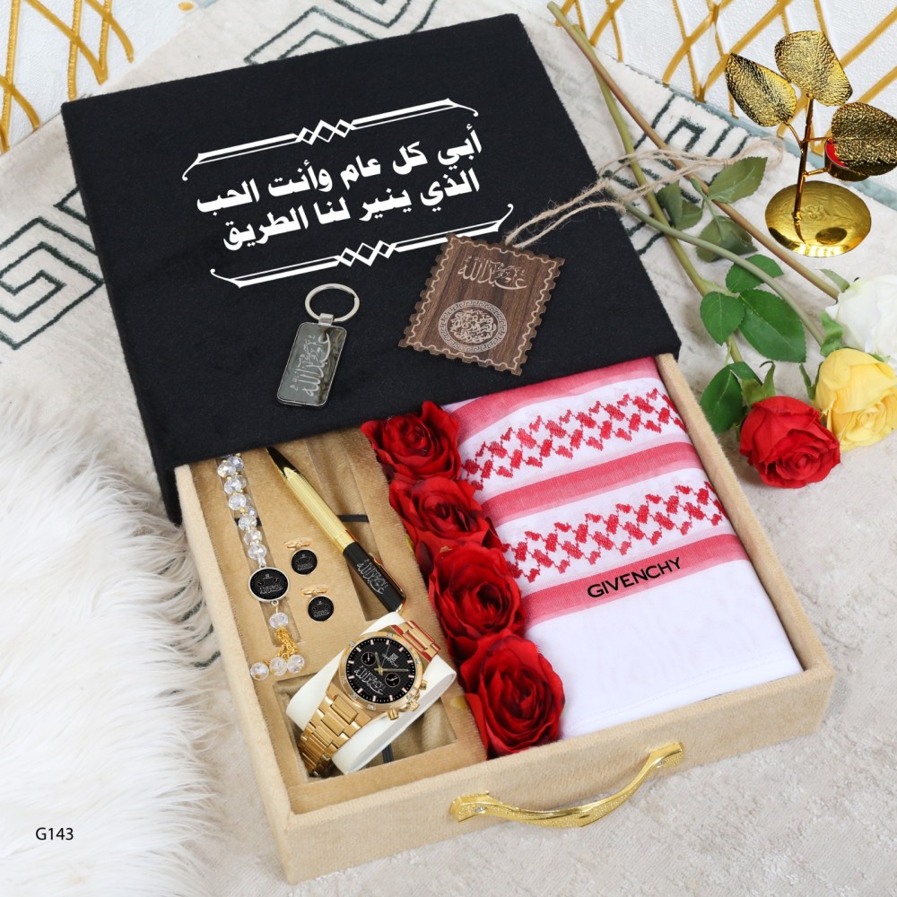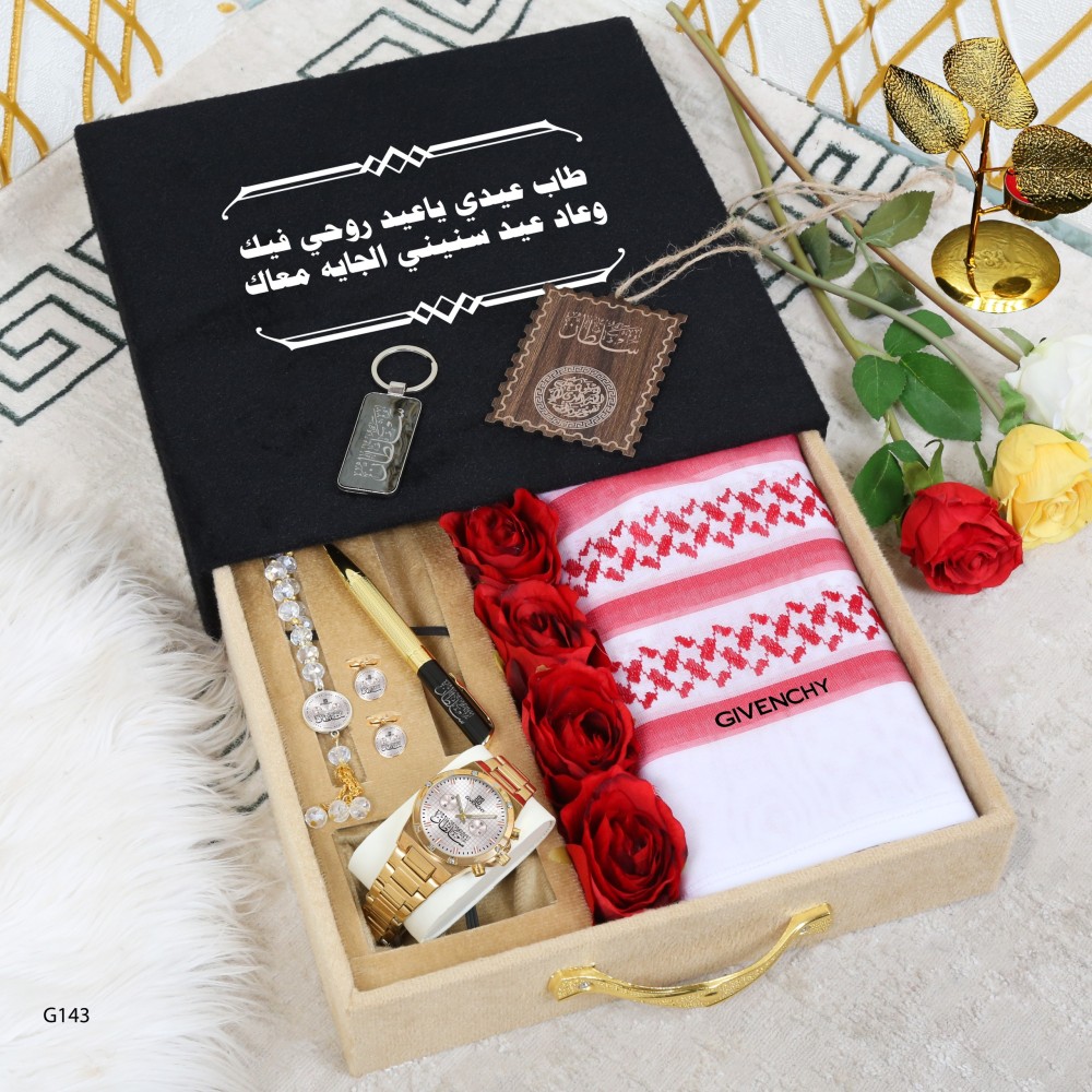طقم وبوكس رجالي هدايا مع شماغ رجاليه مع توابع الماركة