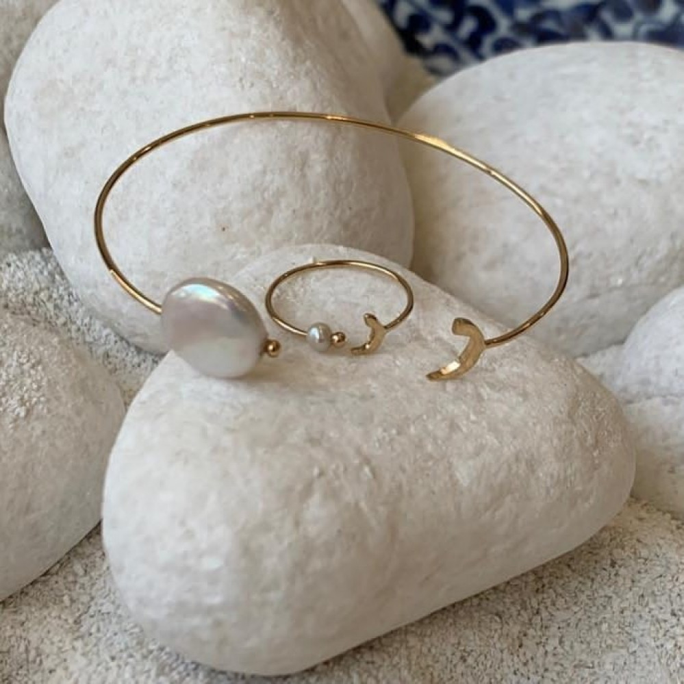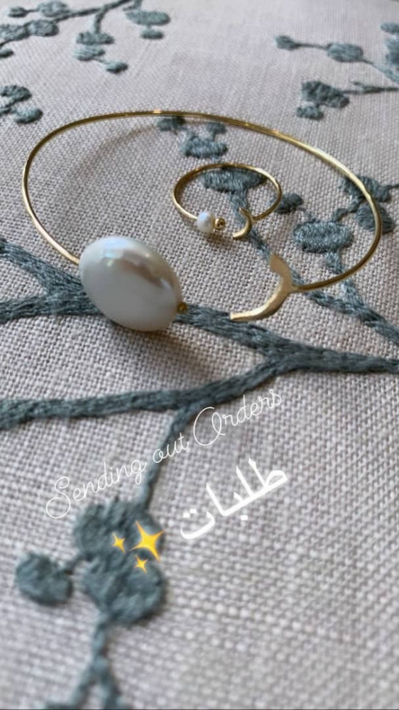 اسوارة وخاتم مع حجر كريم او مع لؤلؤ بتصميم حسب الطلب