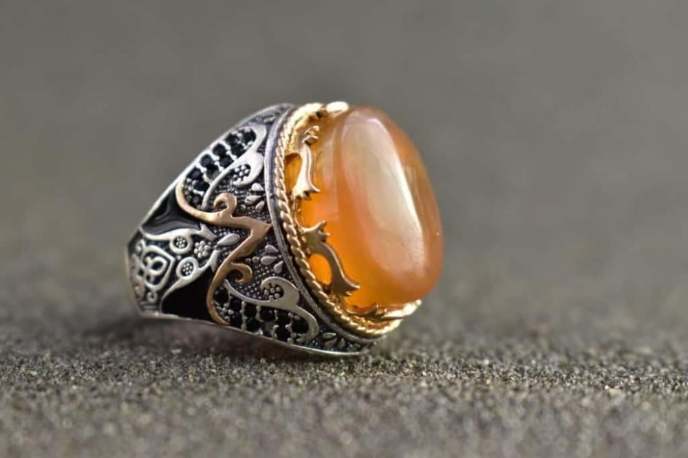 خاتم فضة رجالي مع حجر العقيق اورنج فضه إيطالي خالص عيار٩٢٥