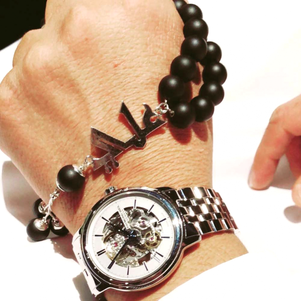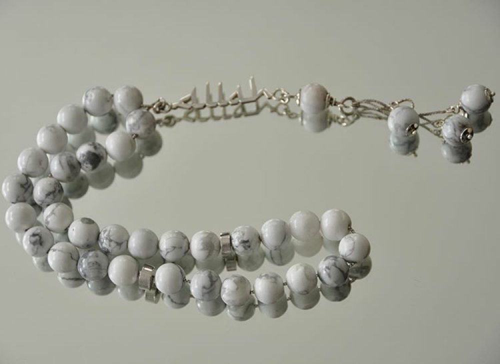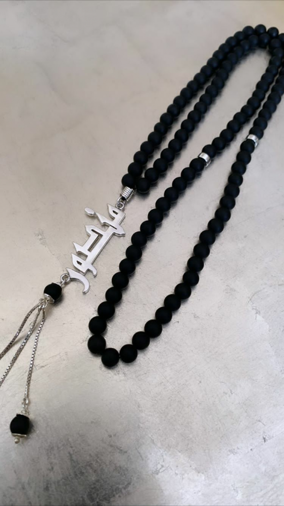 سبحة فضة خالص مع حجر الاونكس الكريم مع نحت اسمك على حجر اونكس