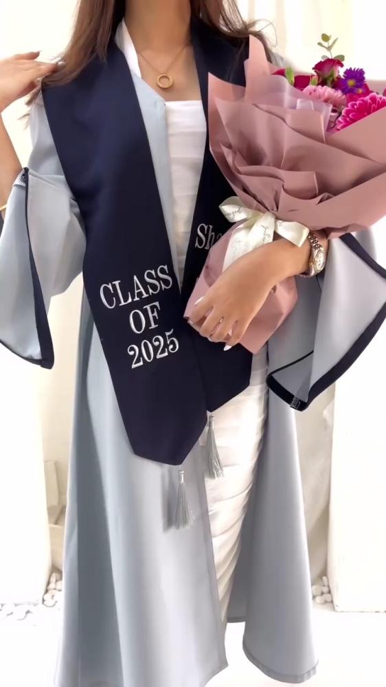 عبايه تخرج 2025 بالاسم والعبارة وسنة التخرج وشعار الدفعة