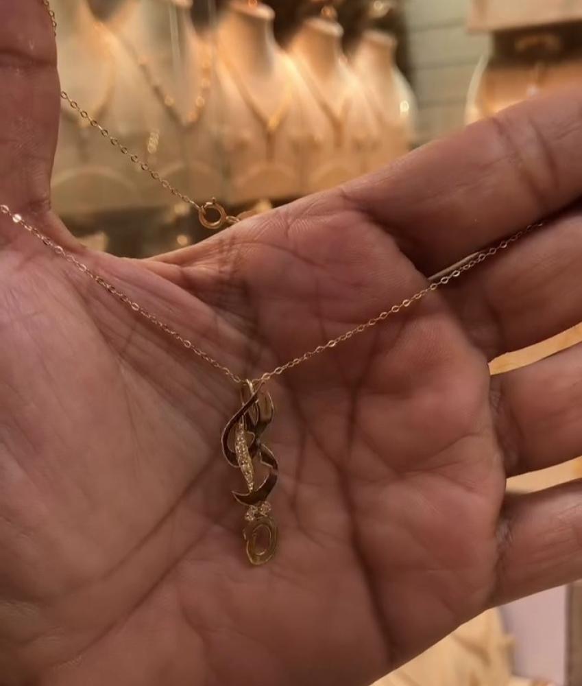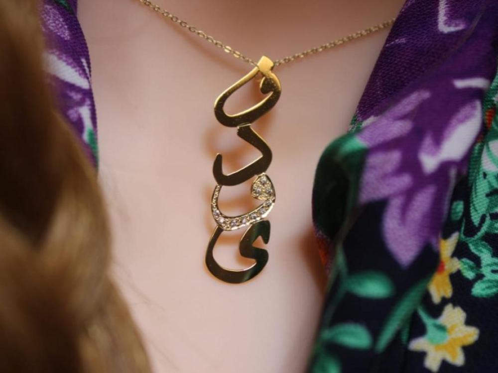مطلي بالذهب عيار 21 قيراط.يمكنك تخصيص أي اسم أو كلمة (عربي أو إنجليزي).متوفر ذهبي أو فضي.