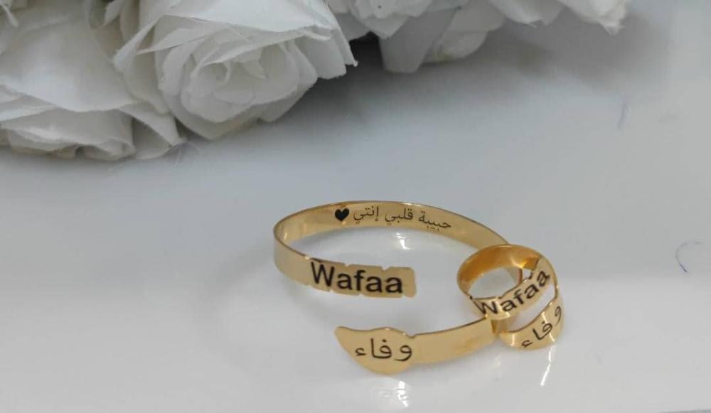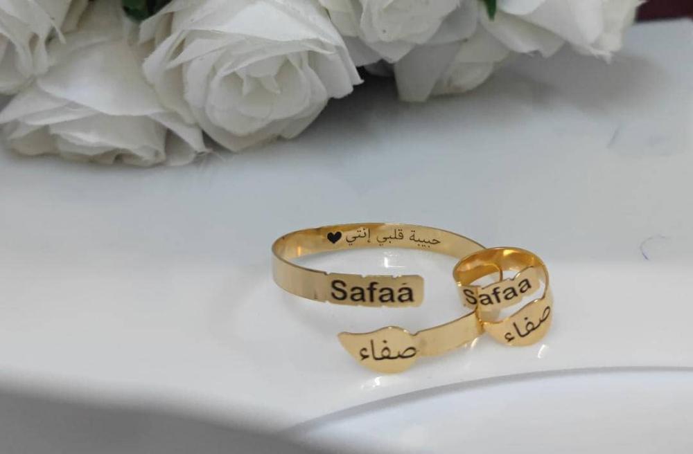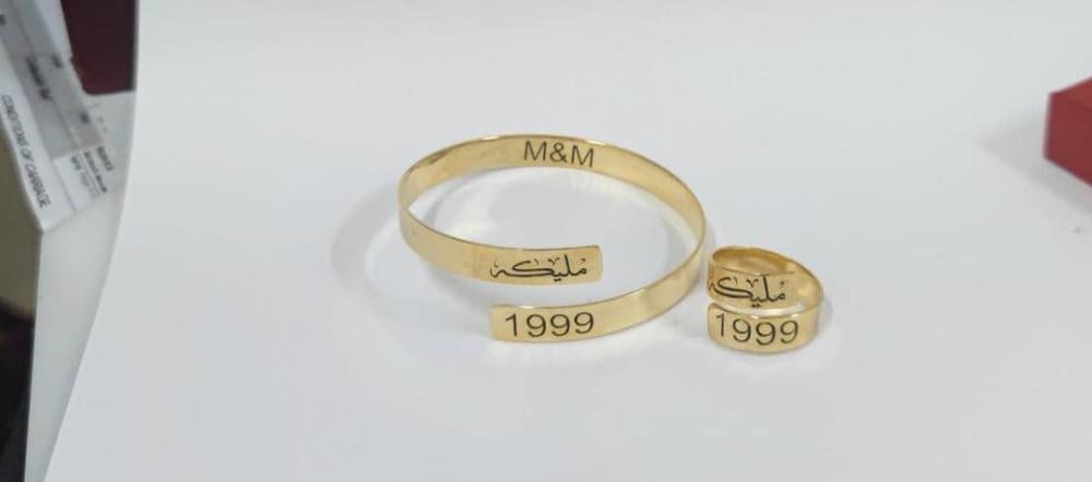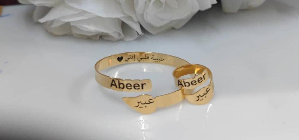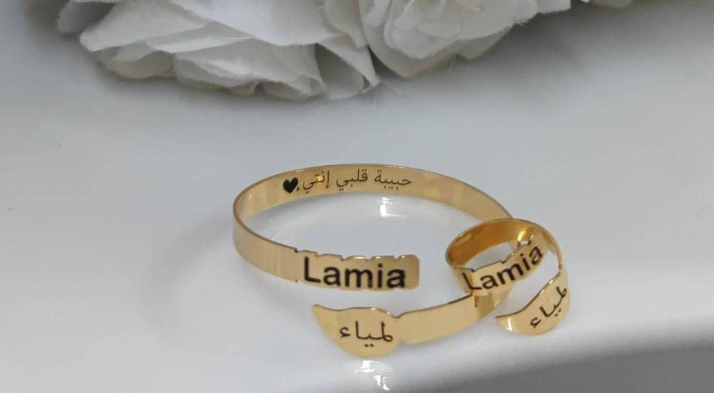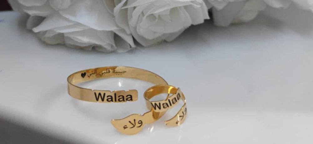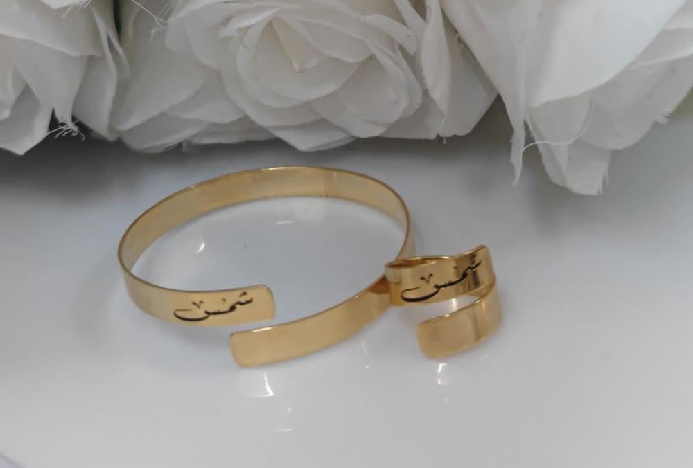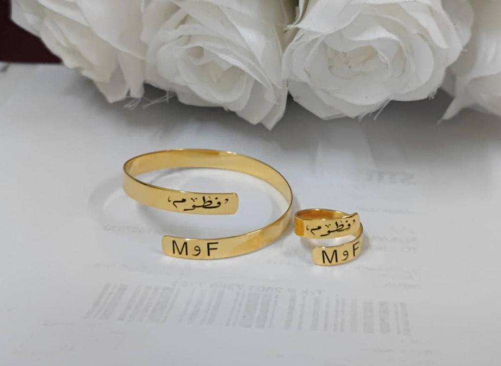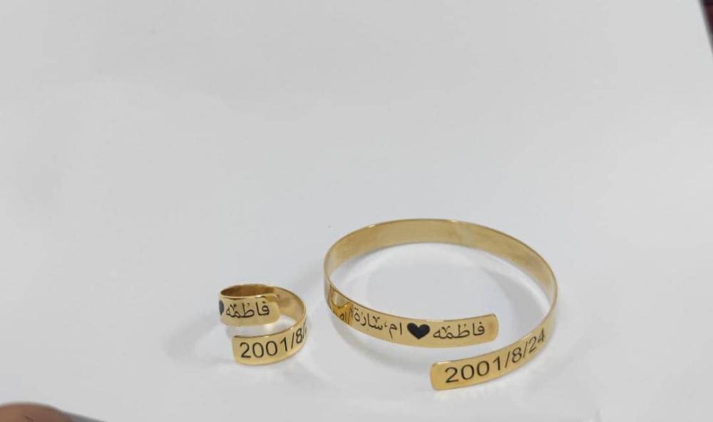 اسوارة وخاتم الاسم والتاريخ المخصص - تصميم خاص بك 💍✨ يمكنك تخصيص النحت