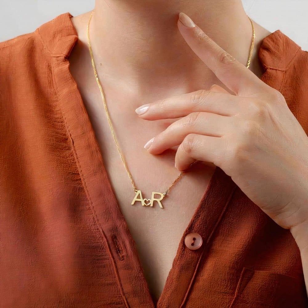 سلسال بحرفين وقلب بتصميم حسب الطلب