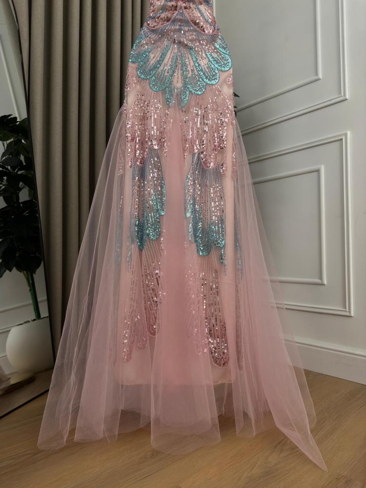 فستان سهره طويل قماش شيفون مع تل دبل كلوش